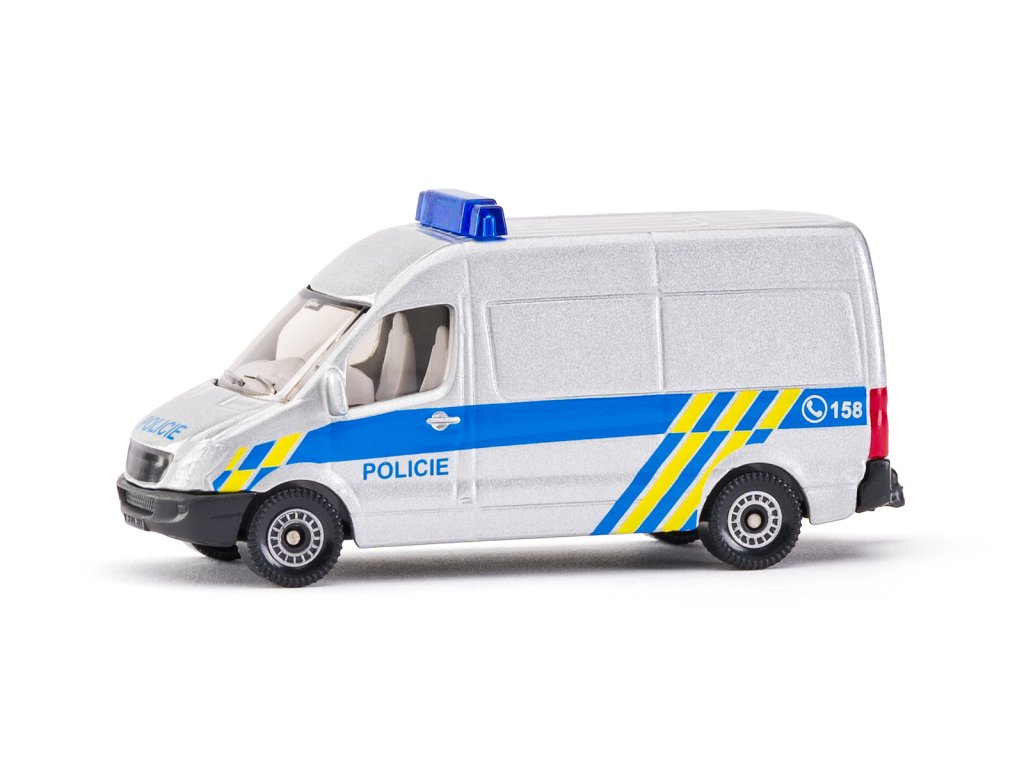 Kovový model policajnej dodávky VAN. Model je vyrobený ako verná kópia policajného vozidla v českej verzii. Tento model SIKU sa vyznačuje realistickými detailmi a je vyrobený z tlakovo zliatinových kovových a plastových komponentov. Balené v blistri. Rozmery modelu: 3,5 x 2,5 x 8 cm. Rozmery balenia: 7,8 x 9,5 x 4 cm. Vek: 3+