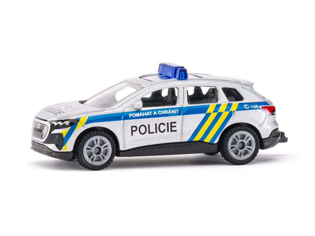 Kovový model SIKU Audi Q4 e-tron česká verzia Polície. Tento model SIKU sa vyznačuje realistickými detailmi a je vyrobený z tlakovo zliatinových kovových a plastových komponentov. Model má gumové plášte pneumatík. Balené v blistri. Rozmery modelu: 3 x 3 x 8 cm. Rozmery balenia: 7,8 x 9,5 x 4 cm. Vek: 3+