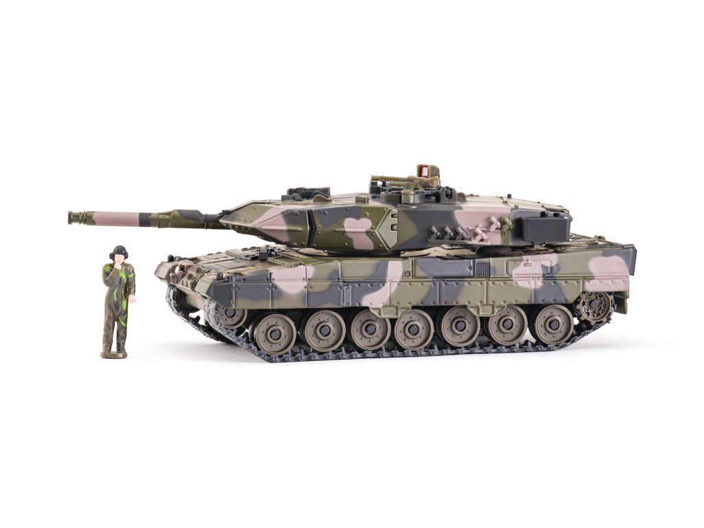 Verná originálna replika vojenského tanku Leopard v mierke 1:50. Tento model SIKU sa vyznačuje realistickými detailmi a je vyrobený z tlakovo zliatinových kovových a plastových komponentov. Modely SIKU neobsahujú žiadne PVC a spĺňajú medzinárodné bezpečnostné normy pre hračky. Model bojového tanku s pohyblivou delovou vežou a delom, hladko sa rolujúcimi pásmi. Obsahuje figúrku vojaka a samolepky na polepenie vozidla. Rozmery tanku: 7,4 x 6,8 x 18,9 cm. Rozmery balenia: 10 x 25,5 x 8,5 cm. Balené v krabičke. Vek: 3+