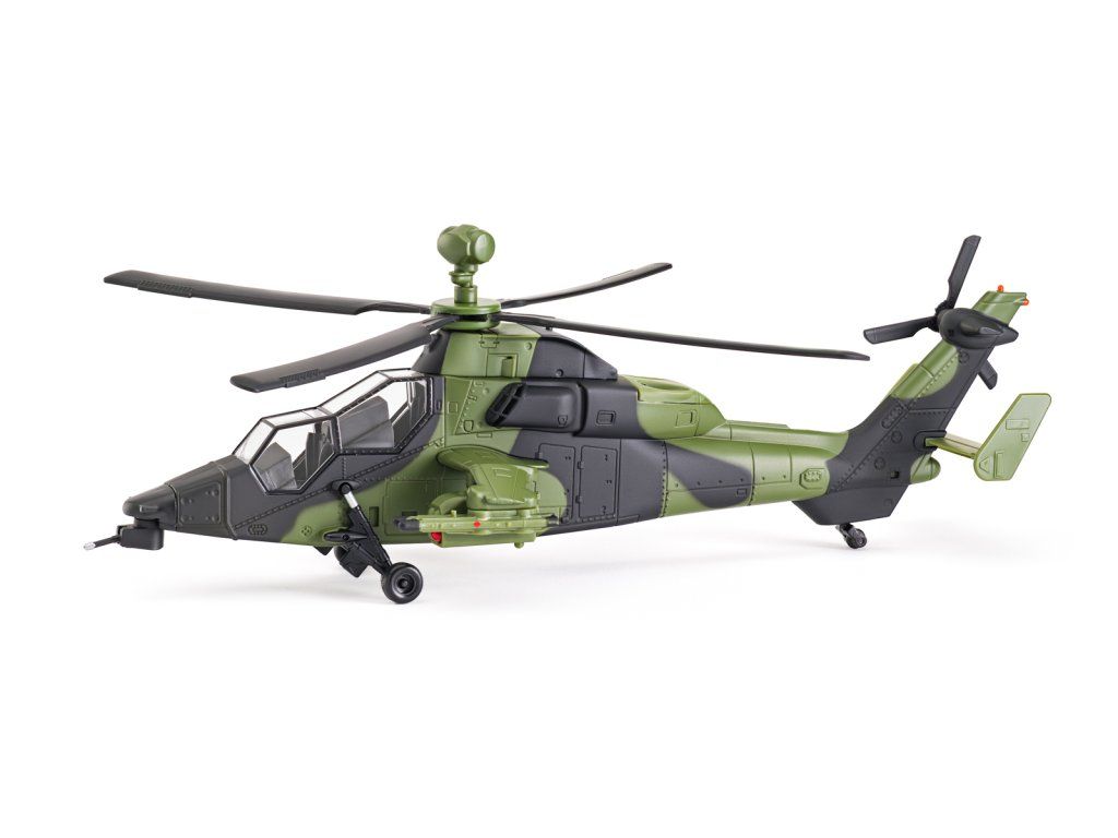 Verná originálna replika vojenského bojového vrtuľníka v mierke 1:50. Tento model SIKU s klasickou vojenskou zelenou a čiernou sa vyznačuje realistickými detailmi a je vyrobený z tlakovo liatych kovových a plastových komponentov. Modely SIKU neobsahujú žiadne PVC a spĺňajú medzinárodné bezpečnostné normy pre hračky. Model bojového vrtuľníka má pohyblivé vrtuľky a je vybavený výkonnými strelami, ktoré nepriateľa oslabia v kolenách. Chytro navrhnutý s pružinovým mechanizmom, jeho raketomet má schopnosť presne vystreliť rakety a zničiť zlého nepriateľa. Rozmery balenia: 13,5 x 34 x 10 cm. Balené v krabičke. Vek: 3+