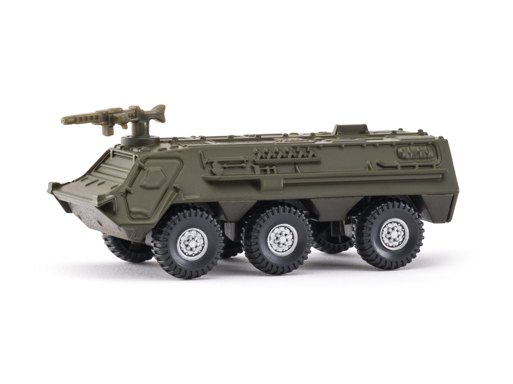 Verná originálna replika vojenského obrneného vozidla. Tento model SIKU v klasickej vojenskej zelenej sa vyznačuje realistickými detailmi a je vyrobený z tlakovo zliatinových kovových a plastových komponentov. Modely SIKU neobsahujú žiadne PVC a spĺňajú medzinárodné bezpečnostné normy pre hračky. Model obrneného vozidla má pohyblivé prvky. Rozmery modelu: 3,5 x 3 x 7,5 cm. Rozmery balenia: 7,8 x 9,7 x 3,5 cm. Balené v blistri. Vek: 3+