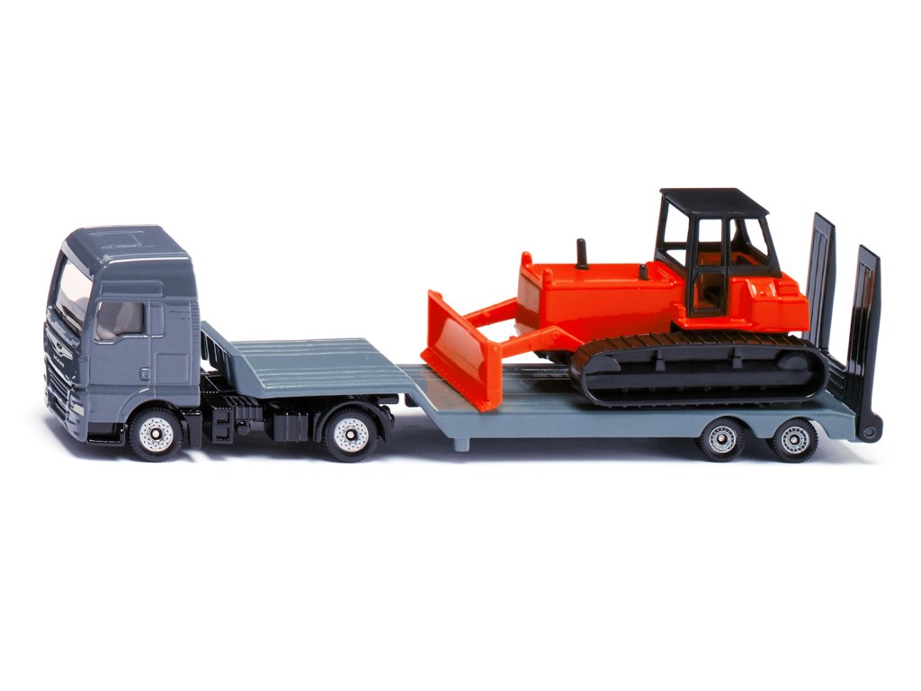SIKU Model ťahača MAN s návesom a buldozérom v mierke 1:87. Tento model je skvostným prírastkom pre každého zberateľa a fanúšika ťažkej techniky a nákladných vozidiel. Kombinácia robustného nákladného vozidla MAN, návesu a buldozéra dáva tomuto modelu ohromujúci realizmus a všestrannosť. Tento model je perfektný nielen pre milovníkov ťažkej techniky, ale aj pre všetkých, ktorí majú záujem o komplexné stavby a prepravu ťažkých strojov. Model je vyrobený z kvalitného kovu a plastu, čo zaručuje nielen vysokú odolnosť, ale aj detailné spracovanie každého jednotlivého komponentu. Nákladné vozidlo MAN je verne replikované so všetkými charakteristickými prvkami, ako je maska, kabína a kolesá s gumovými pneumatikami, ktoré zaisťujú stabilitu a plynulý pohyb. Toto vozidlo je navyše vybavené pripojiteľným návesom, ktorý slúži na prepravu buldozéru, čo je skvelým príkladom využitia nákladného priestoru pre ťažkú ??techniku. Buldozér, ako súčasť tejto zostavy, je spracovaný s maximálnou starostlivosťou, vrátane detailov ako výkonná lopata a robustná konštrukcia. Balené v krabičke. Rozmery balenia: 4,2 x 22,6 x 7,5 cm. Vek: 3+