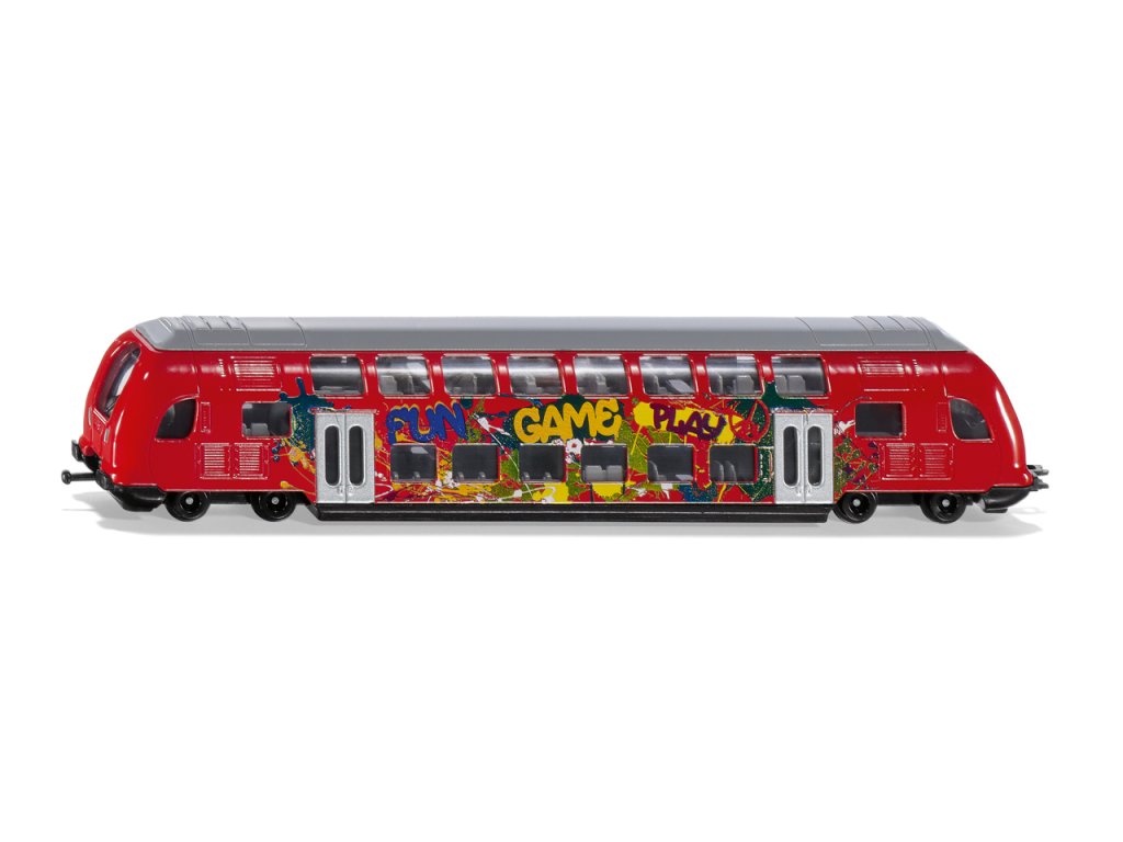 Pozor prosím! Dvojposchodový vlak Siku sa blíži k nástupišťu číslo 1. Vlak je vyrobený prevažne z kovu a jazdí na hladko bežiacich kolesách. Vagón je zdobený jasnými graffiti. Dvojpodlažné vlak je vybavený štandardnými vlakovými spojkami Siku vpredu a vzadu, čo umožňuje pripojiť ďalšie vagóny. Nový dvojposchodový vlak rozširuje rad autobusov a vlakov Siku v sérii verejnej dopravy. Vyrobené z kvalitného a odolného materiálu. Mierka: 1:87. Rozmer: 209 x 27 x 40 mm. Rozmer balenia: 25 x 4,2 x 7,5 cm. Vek: 3+