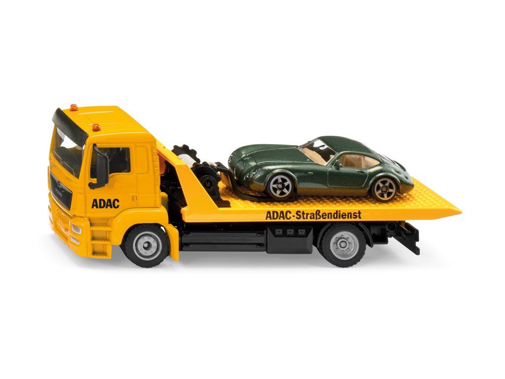 Objavte funkčné odťahové vozidlo v mierke 1:55 pre odvoz vozidiel. Táto sada dokonca obsahuje Siku Wiesmann GT. Zažite realistický proces ťahania s výsuvným navijakom a sklopnou prepravnou plošinou. Vďaka robustnej kovovej karosérii zaujme odťahovka svojim stabilným designom. Gumové pneumatiky zaisťujú vynikajúce vlastnosti. Dlhotrvajúcu zábavu zaručuje nespočet možných kombinácií v hernom svete Siku. Môžu byť ťahané napríklad iné Siku hračky rovnakej veľkosti. Výrobok je vyrobený z vysoko kvalitných materiálov, ako je kov a plast. Rozmer: 130x50x56 mm. Rozmer balenia: 21x8,7x6,5 cm. Vek 3+