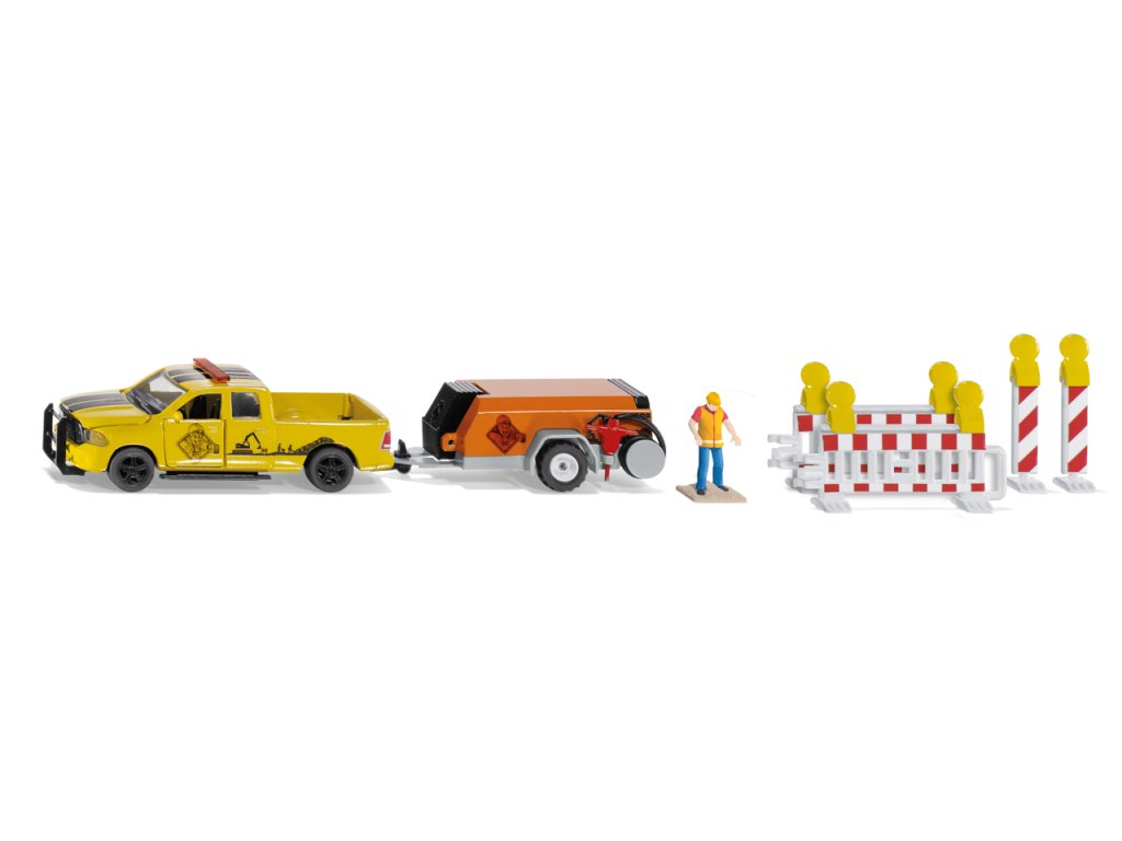 RAM 1500 je monštrum amerického pick-up sveta. Osem valcov a motor s veľkým výkonom - vďaka tomu môže byť na stavenisku použitý ako traktor. Pickup má príves s kompresorom pripojeným k jeho ťažnému zariadeniu. Spustite kompresor, otvorte motor kompresora, aby sa ochladil, nasaďte si prilbu a slúchadlá - a môžete začať! Tím stavenisko je ľahko viditeľný aj z diaľky, a to vďaka žlto-oranžovému odevu. Stavba je navyše chránená bariérami a nosníky, ktoré sú súčasťou sady. Sada tiež obsahuje figúrku robotníka. Vyrobené z kvalitného a odolného materiálu. Vek: 3+. Rozmer: 210 x 43 x 40 mm. Rozmer balenia: 34 x 11,5 x 6,5 cm.