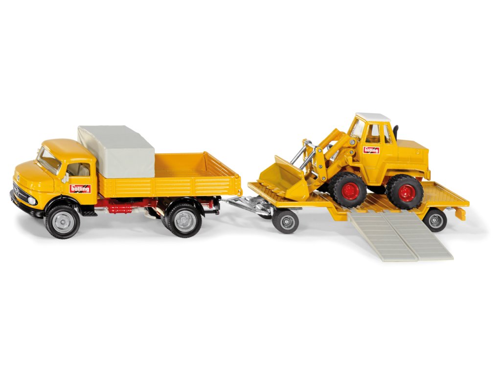SIKU Super - súprava Mercedes-Benz 710 prevážajúci nakladač 411 Bölling 1:50