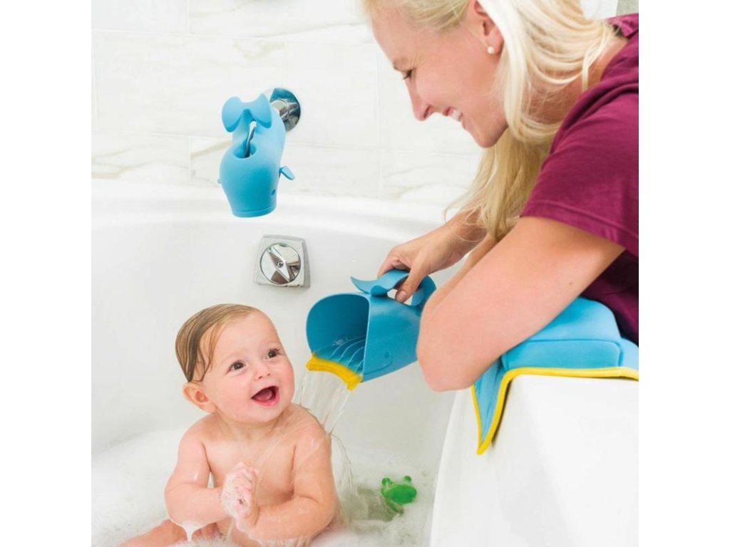 Pohár Moby prináša inováciu pri oplachovaní. Vďaka vnútorným priehradkám tok vody je ustálený, čím sa zabezpečí rýchle oplachovanie. Mäkká guma prirodzene kopíruje tvar čela, čím sa zabráni vniknutiu vody do očí. Ľahká rukoväť umožňuje držať pohár v jednej ruke zatiaľ čo v druhej držíte bábätko.