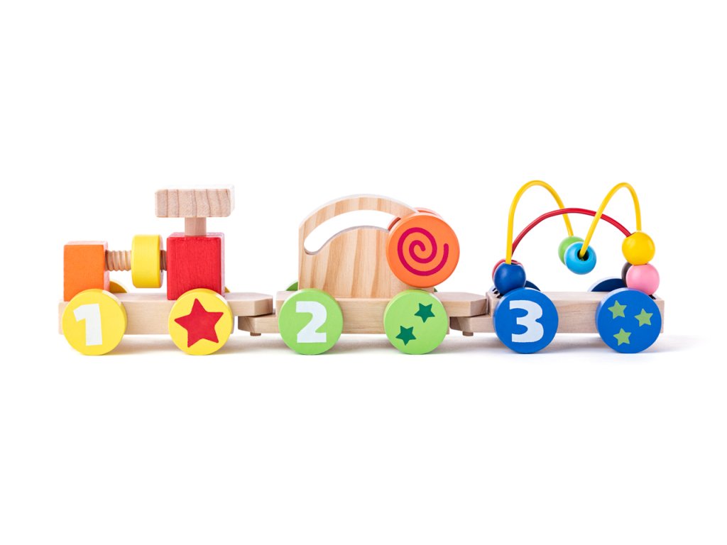 Vláčik pre najmenších ponúka deťom hneď niekoľko prvkov k precvičeniu jemnej motoriky: skrutku na lokomotíve, korálky na drôtenej konštrukcii, pohyblivé koliesko. Obsahuje: 3 dieliky. Rozmer: 32,5 x 9 cm. Rozmer balenia: 35 x 7,5 x 9 cm. Vek: 18m+