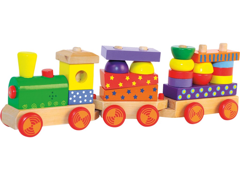 Drevený skladací vlak má lokomotívu a dva vagóniky. Na každú jeho časť sa dajú navliecť farebné kocky a tvary. Lokomotíva svieti a pri stlačení komína hrá. | Batérie 2x AAA sú súčasťou balenia. | Rozmery: 43 x 13,5 cm | Vek: 2+ | Počet ks: 20