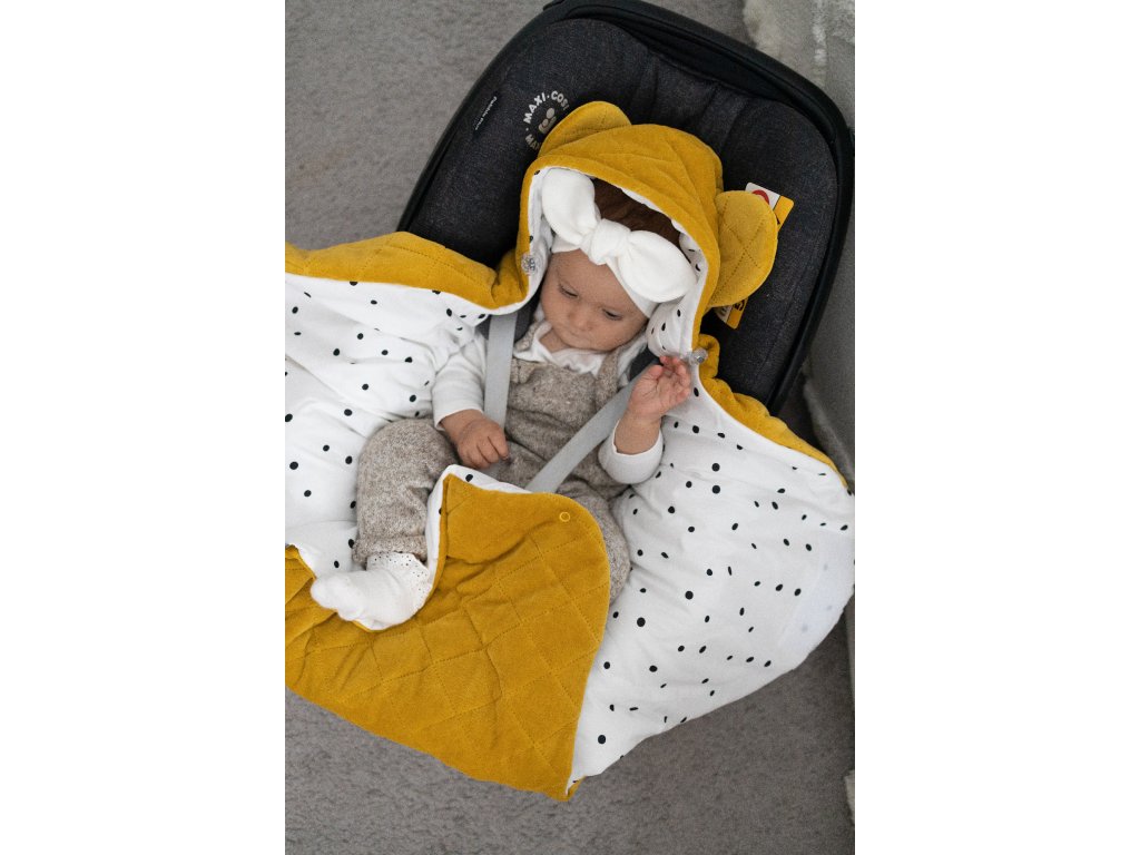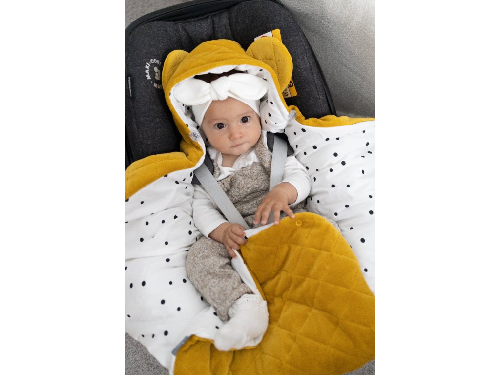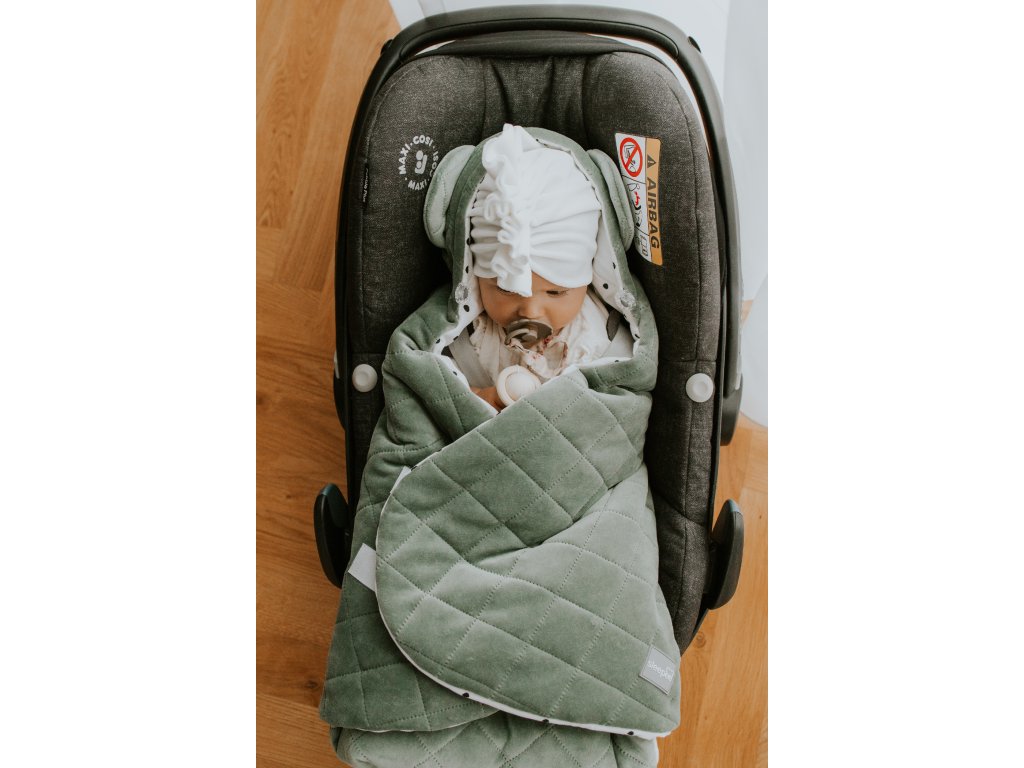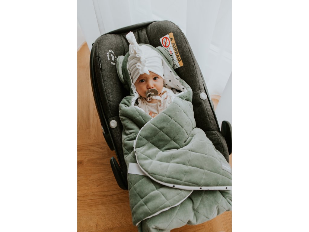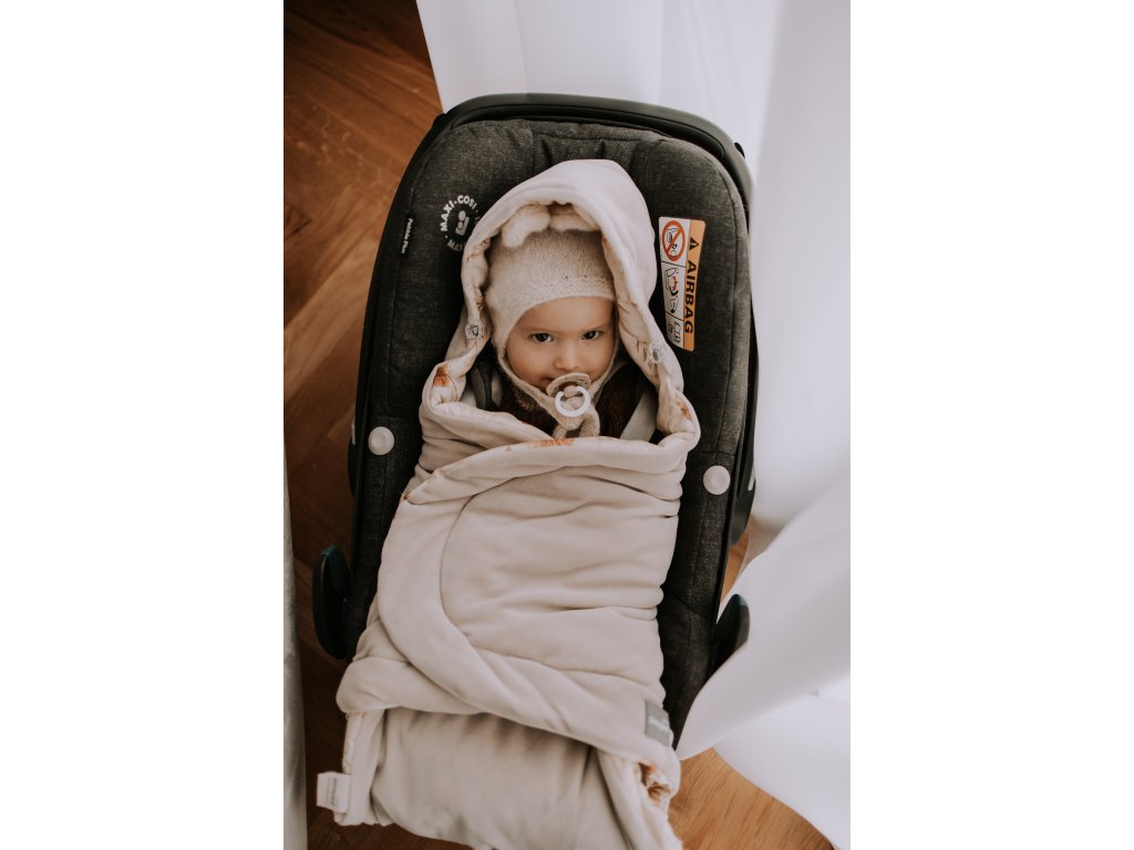 Zavinovačka se bezpečně vsadí do autosedačky a miminku nespadne ani když bude kopat nožičkami. Deka skvěle drží na svém místě a nemusíte se bát, že se v průběhu jízdy miminko odkope.