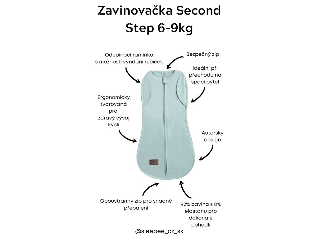 Zavinovačka Second Step Swaddle je určena pro děti od 6,5 - 9 kg.