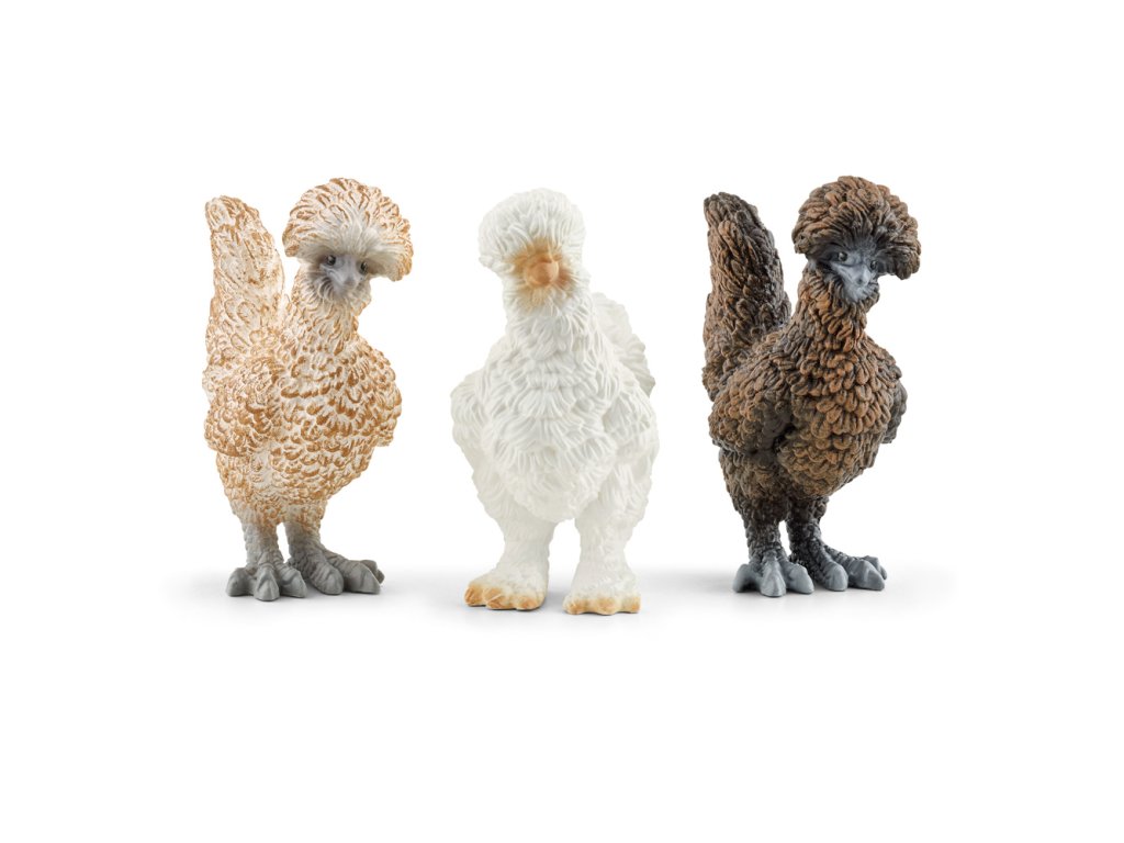 Chaos v stodole! Tri slepačie kamarátky z kolekcie Schleich® FARM WORLD tie na farme urobia poriadny neporiadok. Či už ide o krádež niečoho zo zberu, pomaľovanie spiaceho kohúta alebo premiešanie tvojich farebných pasteliek, tieto tri operené kamarátky vždy niečo vykonajú. A ako zohranému tímu im to väčšinou prejde. A tak sa smejú, čechrajú si perie a tancujú po lúke. Vďaka ich rôzne sfarbenému periu ich však vždy rozoznáš. Dokážeš zistiť, ktorá z nich je najväčší nezbedník? Rozmery: 19,2 x 13,6 x 5,8 cm. Vek: 3+