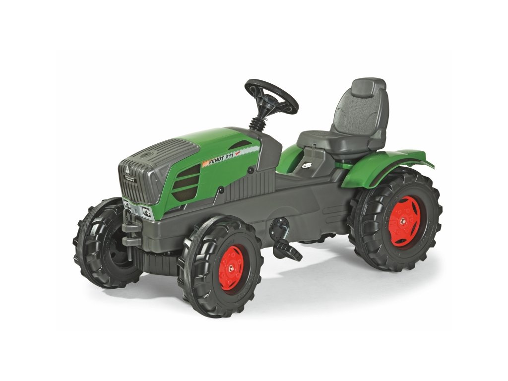 Šliapací traktor Farmatrac Fendt 211 Vario nadchne všetkých malých poľnohospodárov! Traktor je možné dovybaviť prívesom, čelným nakladačom či iným príslušenstvom. Hračka kopíruje dizajn skutočného poľnohospodárskeho stroja. Profilované pneumatiky sú vybavené ochrannou gumou, ktorá zabraňuje poškodzovaniu samotných pneumatík. Guma je vymeniteľná, nemusí sa meniť celé koleso. Aj vďaka tomu sa veľmi predĺži životnosť traktora. Traktor vyniká extra stabilným 12 mm hrubým hriadeľom zadných kolies. Reťaz je ukrytá v prednej zdvíhacej kapote. Sedátko je posuvné a pohodlné sedenie zaručuje zvýšená opierka chrbta. Šliapací mechanizmus je možné plynule regulovať podľa aktuálnej výšky dieťaťa. Nosnosť: 50 kg. Hmotnosť: 11 kg. Rozmery: 106 x 50 x 65 cm. Vek: 3+
