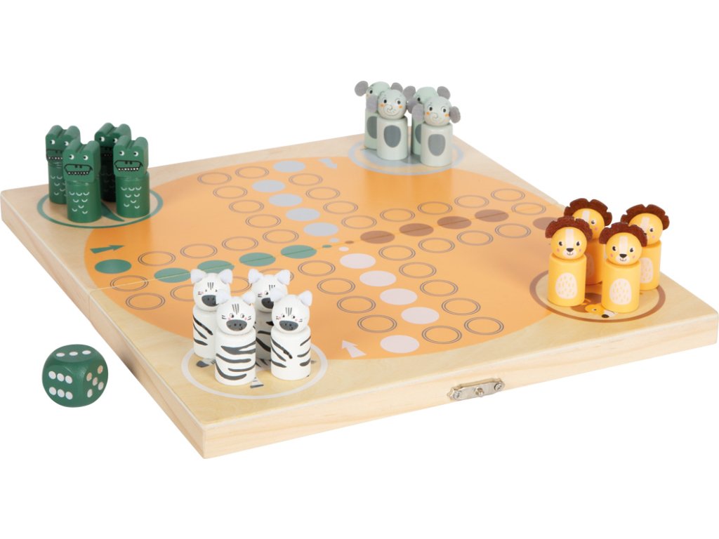 Človeče nehnevaj sa Safari pre 4 hráčov Klasická stolová hra s veselými safari zvieratkami Zažite klasickú rodinnú hru v úplne novom štýle! Človeče, nehnevaj sa Safari prináša do obľúbenej stolovej hry veselé safari zvieratká – zebru, krokodíla, slona a leva. Figúrky s roztomilými detailmi z plsti robia hru ešte zábavnejšou pre deti aj dospelých. Hra je ideálna na rozvoj jemnej motoriky a učenie počítania, pričom prináša veľa radosti z víťazstva aj napätia pri prekážkach na ceste do cieľa. Praktická skladacia hracia doska slúži zároveň ako úložný box na figúrky a kocku, čo z nej robí perfektnú hru na cesty. Vysokokvalitné drevené spracovanie, moderné farby a odolné materiály robia z tejto safari verzie skvelý doplnok do každej hernej zbierky.