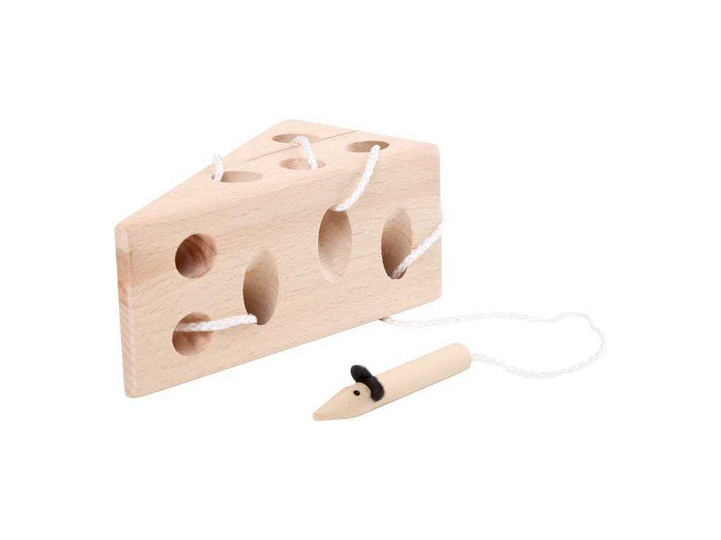Prevliekanie Syr s myšou Deti prevliekajú myšku dierami v syre Drevená hračka predstavuje kúsok syra, ktorý je spojený povrázkom s malou myškou. Šnúra je dostatočne dlhá, aby vaše dieťatko mohlo prevliekat myšku dierami sem tam, ako sa mu zapáči.Cvičí si jemnú motoriku a koordináciu ruka-okoOkrem toho si zlepšujú pamäť a trpezlivosť. Myšku totiž musí po rovnakej trase zase vrátiť späť, aby sa im povrázok nezamotal. Hračka je vhodná pre deti od 3 rokov (pod dozorom dospelej osoby si s ňou môžu hrať aj mladšie deti).