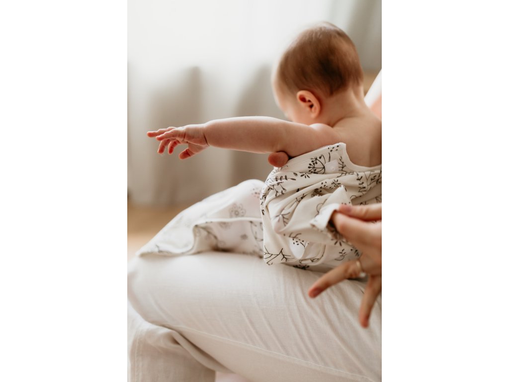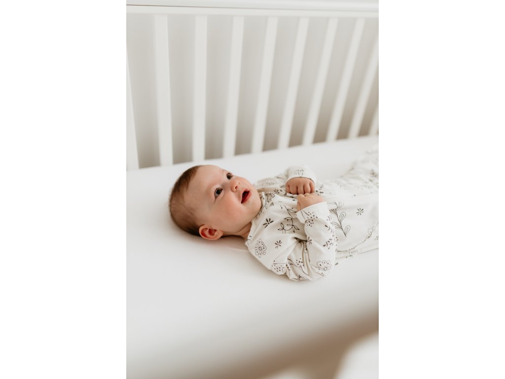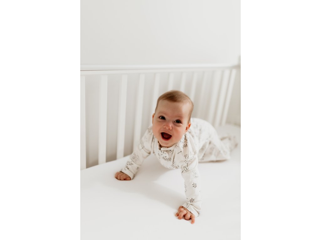 Je ručně šitý z bavlny nejvyšší kvality, která pomáhá udržet stálou přirozenou teplotu miminka. Díky tomu se nebude při spánku přehřívat, ani mu nebude chladno. Látka navíc obsahuje 8% elastanu, takže je krásně pružná, příjemná na dotek a dokonale heboučká.