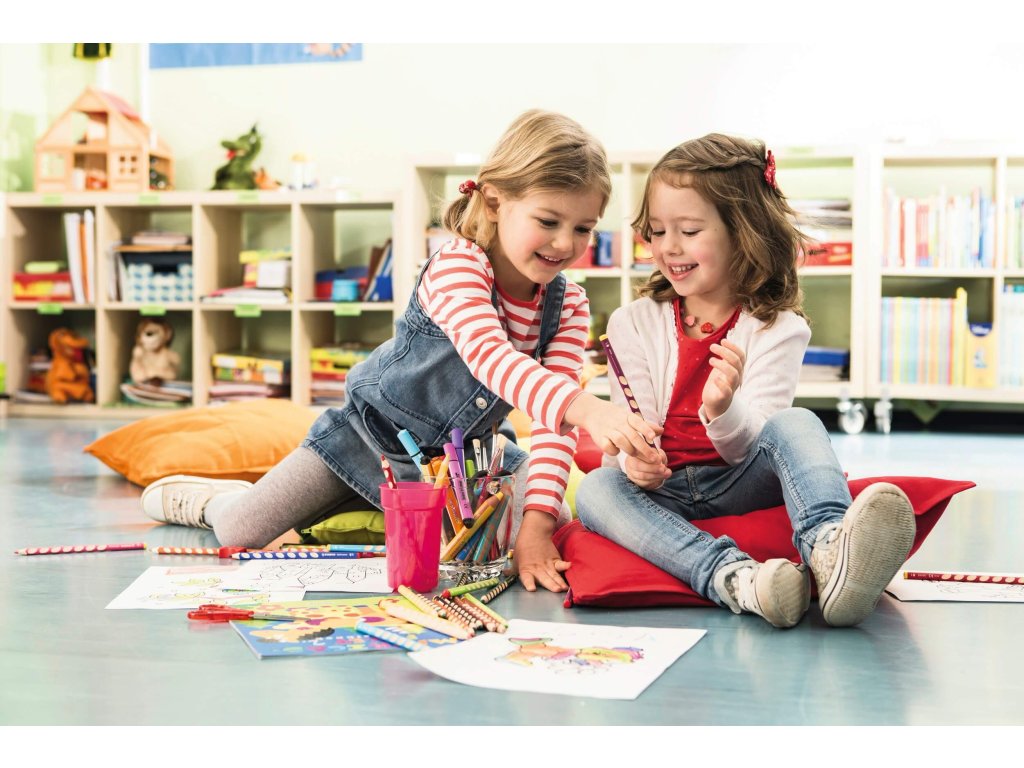 Pastelky trojhranné Pre pravákov 6 ks Kresliť krajšie a ľahšie je predsa tak jednoduché Prvá ceruzka, ktorej ergonómia je celkom prispôsobená potrebám pravákov.Pre predškolákov, školáčky a školákov všetkých tried Trojhranný design a jedinečné nekĺzavé plôšky zaisťujú uvoľnené držanie, stabilitu a správny úchop vďaka uloženiu prstov. Balenie obsahuje 6 farebných odtieňov. Šírka tuhy 4,2mm. Drevo pochádza z trvalo udržateľného lesného hospodárstva. Na každej farbičke je políčko na vpísanie mena.