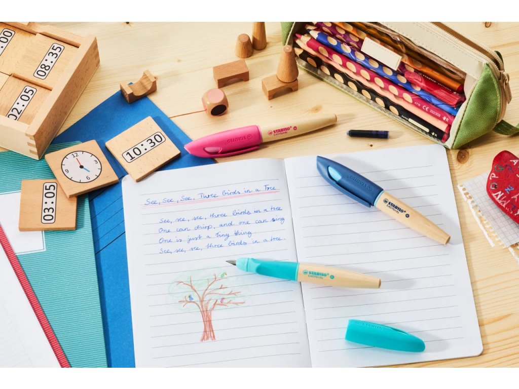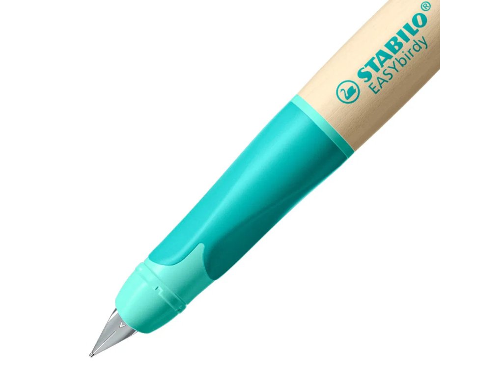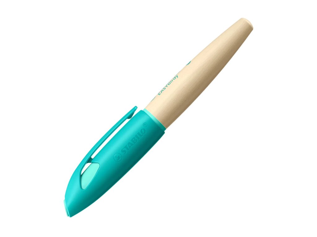 Plniace pero EASYbirdy pre začiatočníkov Zelené pre pravákov Ergonomické pero pre pravákov STABILO EASYbirdy je revolučné ergonomické plniace pero navrhnuté pre pohodlné a plynulé písanie. Vďaka jedinečnému 30-stupňovému nastaviteľnému uhlu hrotu sa dokonale prispôsobí individuálnej polohe ruky. Výsledkom je čistý, úhľadný rukopis bez rozmazania a škrabancov. Protišmyková úchopová zóna zabezpečuje stabilitu pri písaní, zatiaľ čo zapuzdrený iridiový hrot chráni pred škvrnami od atramentu. Pero je navyše vybavené precíznym tesniacim systémom, ktorý zabraňuje vytekaniu atramentu. Vďaka možnosti opätovného naplnenia atramentom v kráľovskej modrej farbe, ktorý je zmizíkovateľný, je toto pero ideálnym spoločníkom pre školákov aj dospelých.