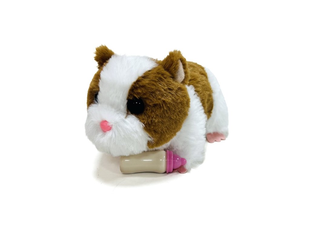 Priložte fľašu s mliekom k papuli, ozve sa zvuk pitia. Vyberte fľašu s mliekom, ozve sa roztomilý zvuk.