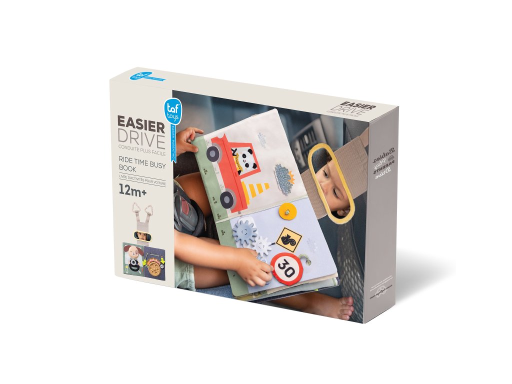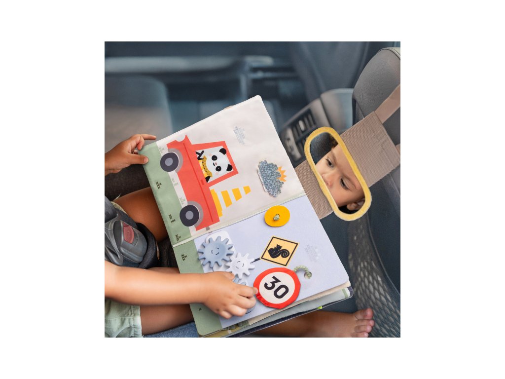 Knižka s aktivitami do auta Taf Toys Busy Book premení každú cestu v zábavné hranie plné prekvapení a rôznorodých aktivít. Pult sa jednoducho upevní na opierku hlavy, takže je hračka pre dieťa v autosedačke vždy na dosah – či už sedí proti smeru alebo po smere jazdy. V knižke s krásnymi motívmi dopravných prostriedkov a zvieratiek nájdete pohyblivé autíčka, pop-it bublinky, okná s prekvapením a mnoho ďalších aktivít, ktoré malých cestovateľov zabavia a rodičom poskytnú pokoj na riadení.