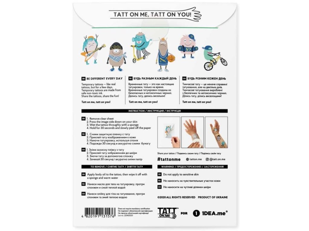 Sada obsahuje 6 samostatných tetovaní a aplikačnú hubku.