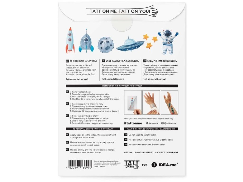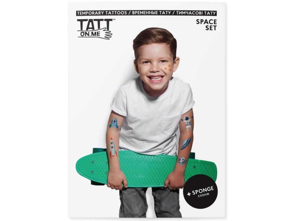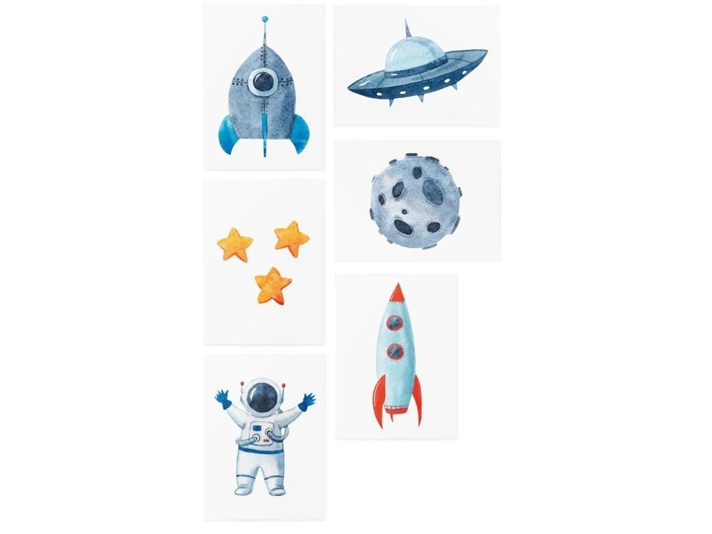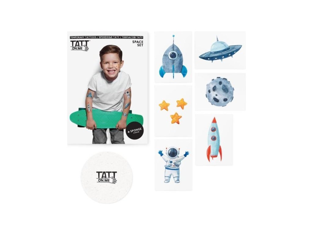 Súprava vesmírnych dočasných tetovaní je určená pre mladých prieskumníkov a astronautov.