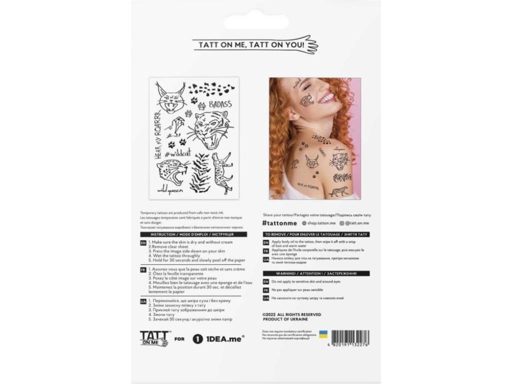 TATTonMe Vodeodolné dočasné tetovačky Divoké mačky mix