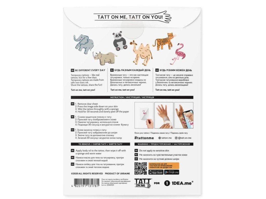 Hľadáte ešte niečo zaujímavejšie, ako bežné tetovanie pre deti? Živé tetovačky to vyriešia za vás! Ste dnes Panda, Tiger, Plameniak, Slon, Nosorožec alebo Ťava? Hrajte a učte sa s ázijskými živými tetovaniami zvierat. AR kolekcia ekologických tetovačiek so zvieratkami zo všetkých kútov sveta.