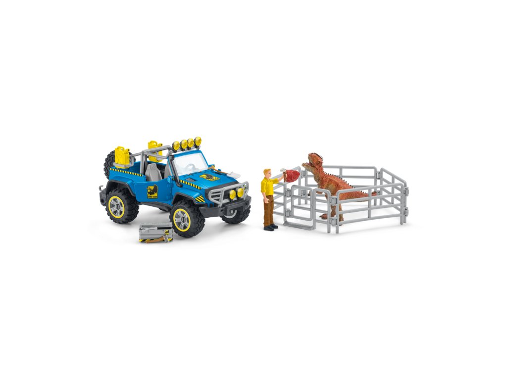S terénnym vozidlom sa LUIS môže rýchlo dostať na základňu a chytať Giganotosaurusa pomocou veľkej návnady na mäso. V prípade, že pri svojej ceste vojde do bahna, môže si pomocou svojej sady nástrojov ľahko vymeniť kolesá alebo pomocou navijaka vytiahnuť terénne vozidlo znovu von. Terénne vozidlo od Schleich® Dinosaurs ponúka celý rad herných možností. Figúrka s pohyblivými pažami a nohami! Figúrky Schleich® sú modelované do najjemnejších detailov, aby pomohli deťom učiť sa pri hraní. Je ideálna pre deti vo veku 4-10 rokov. Terénne vozidlo so základňou dino od Schleich® Dinosaurs je perfektným doplnkom výskumnej stanice (41462). Sada obsahuje: 1x terénne auto s navijakom, 1x výskumník Luis, 1x Giganotosaurus, 1x návnada, 1x sekera, 1x turniket, 1x rýľ, 1x hliníková krabička, 4x plotový prvok, 1x vstupná brána, 1x samolepka. Nevhodné pre deti do 3 rokov. Video: https://www.youtube.com/watch?v=skhV94dz7PY