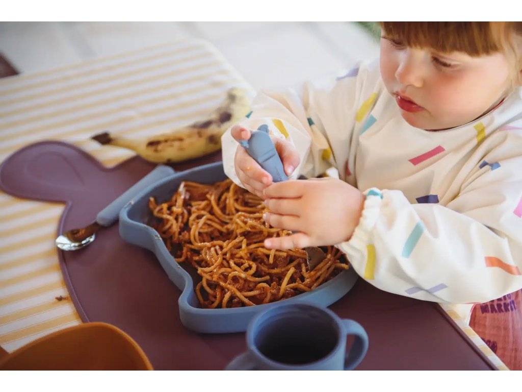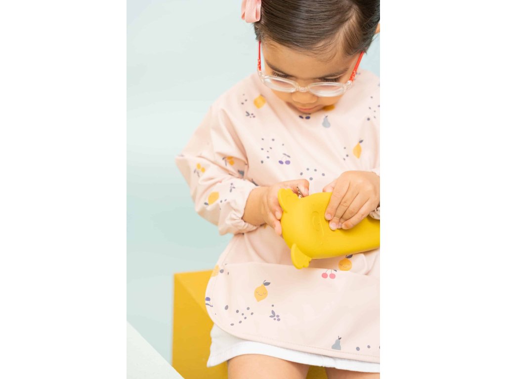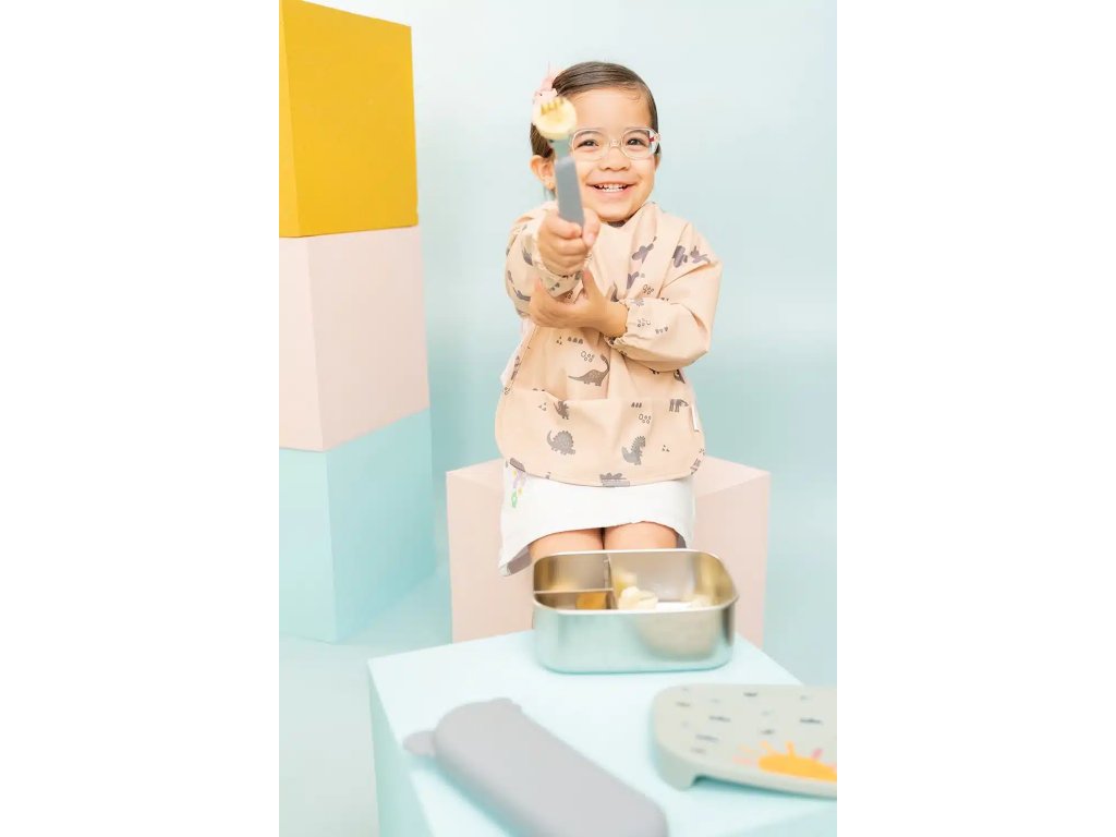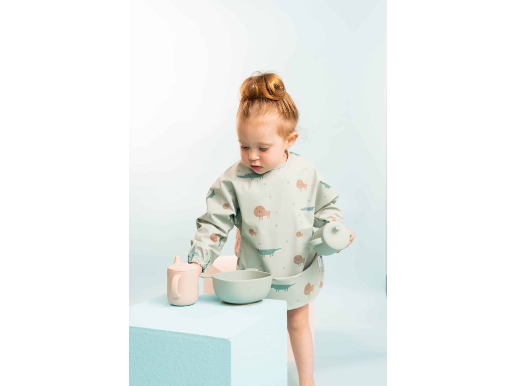 Podbradník je vyrobený z nepremokavej tkaniny, ktorá sa ľahko čistí, odoláva väčšine škvŕn a pachov. 100% recyklovaný Oeko-Tex polyester je nielen vodeodolný, ale je tiež možné ho umývať v práčke. Vodoodpudivý materiál robí tento všestranný podbradník nielen ideálnym na jedenie a kŕmenie, ale je tiež skvelý pre umelecké a remeselné projekty doma alebo v škôlke. Vstavané vrecko na zachytávanie pomáha udržať neporiadok pri jedle na minimum.