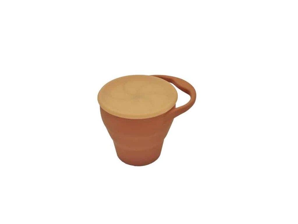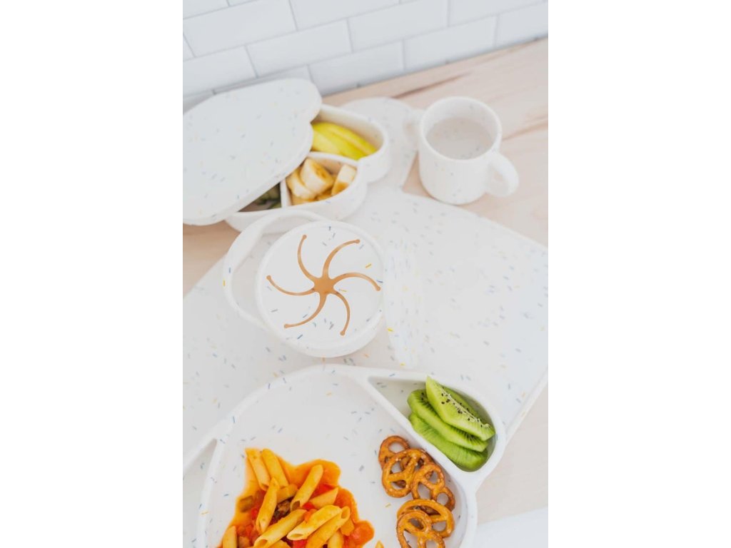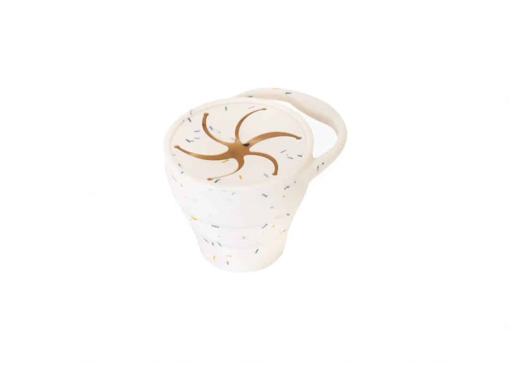 Silikónový snack - hrnček Cotton Cloud je vďaka uzatvárateľnému vrchnému viečku skvelým pomocníkom na cesty. Váš drobček si môže vychutnávať vždy čerstvý snack z vyvýšeného hrnčeka, po ktorý sa ľahko dostane vopchaním rúčky cez vrchnú priepustnú vrstvu. Hrnček je navyše možné poskladať a znížiť, aby drobec bez problémov dočiahol až na dno. Vrchná vrstva zároveň zabraňuje ľahkému vysypaniu jedla z hrnčeka. Silikónové uško z protišmykového materiálu zabezpečuje pohodlné uchopenie hrnčeka malými detskými ručičkami.
