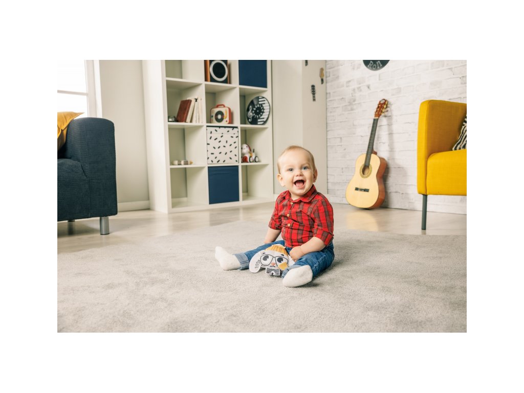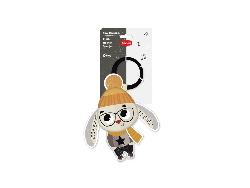 Originálna hrkálka v podobe zajačika je vyrobená z mäkkého textilného materiálu. Hračka pri pohybe hrká, uši zajačika pri stlačení šuštia. Vďaka plastovému krúžku je možné ju zavesiť na autosedačku či kočík, aby mohla vaše dieťa zabaviť aj na cestách.