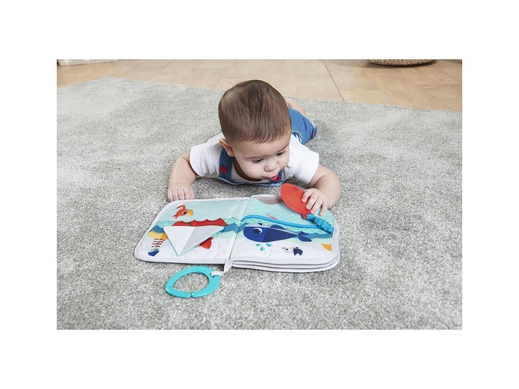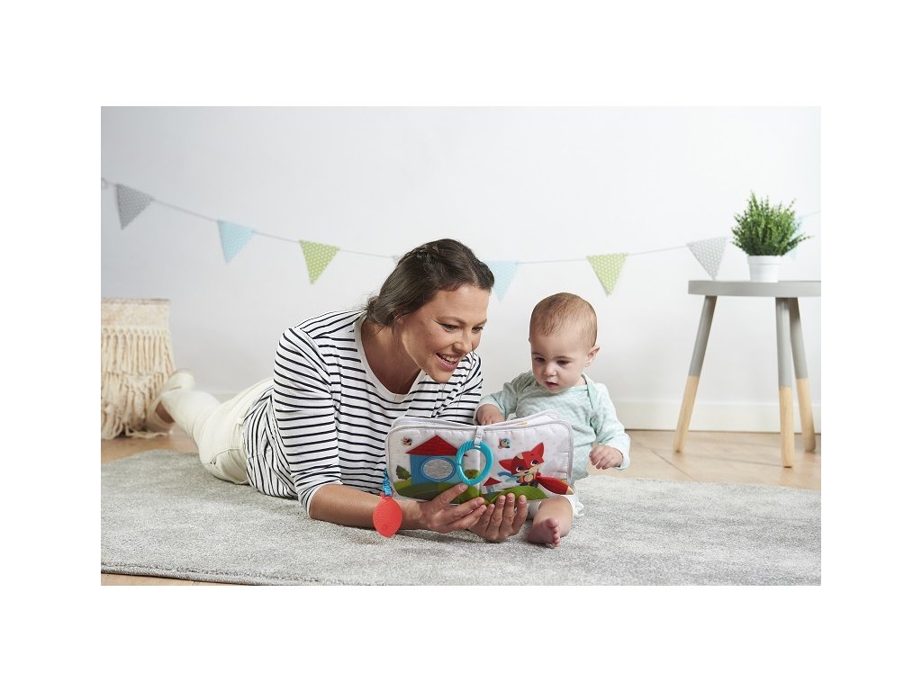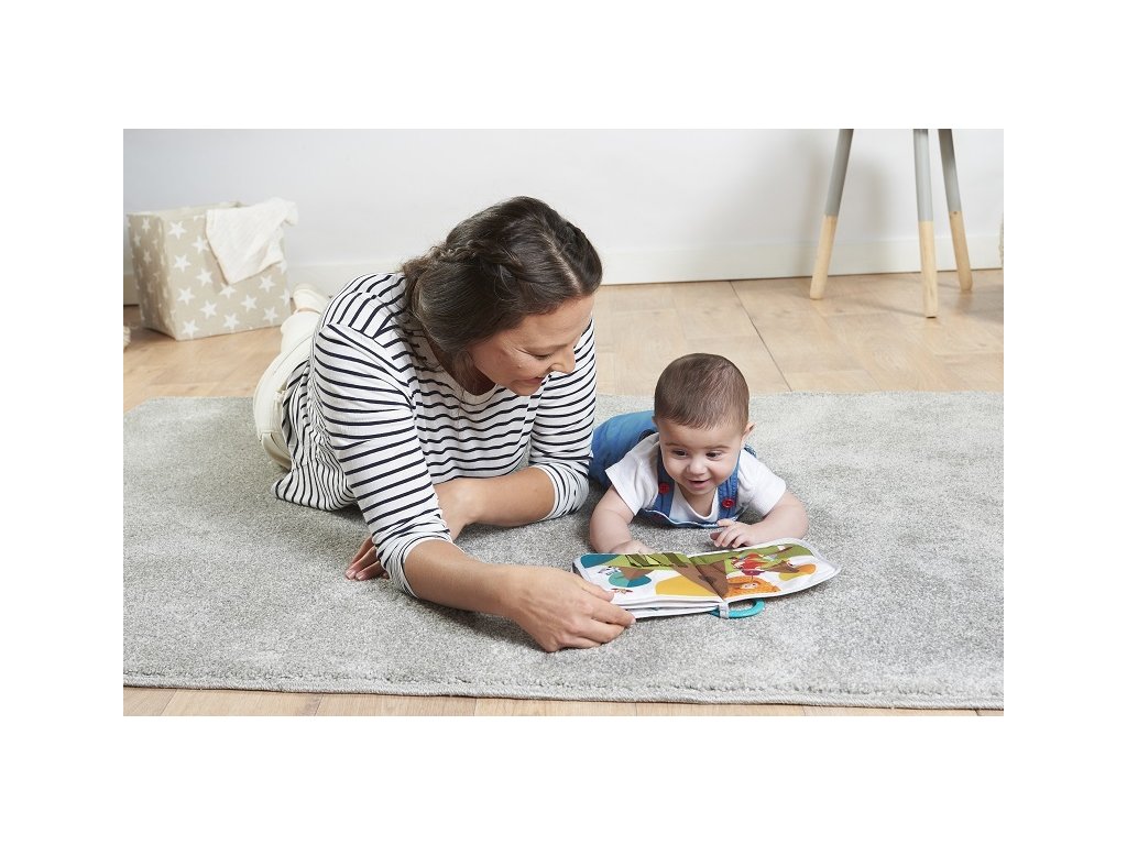 Textilná knižka s krásnymi obrázkami zvieratiek vo vysoko kontrastných farbách pomáha rozvíjať zrak dieťaťa. Ponúka dieťaťu rôznorodé aktivity a textúrami pre skúmanie vrátane hryzátka, ktoré pomôže dieťaťu pri prerezávaní prvých zúbkov.