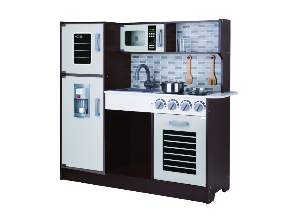 Drevená kuchynka Rozvíjajte fantáziu svojho dieťaťa s drevenou kuchynkou Drevená detská kuchynka je skvelou hračkou, ktorá prebúdza v deťoch fantáziu a kreatívne myslenie. Pri hre na malého šéfkuchára si deti osvojujú komunikačné schopnosti, učia sa pracovať samostatne aj v tíme a objavujú radosť zo starostlivosti o poriadok v kuchyni. Okrem prípravy lahodných "jedál" sa naučia organizovať svoj priestor, upratovať a starať sa o pomôcky, ktoré používajú. Táto realistická kuchynka pomáha rozvíjať zmysel pre zodpovednosť a podporuje sociálny rozvoj dieťaťa – a to všetko zábavnou a prirodzenou formou!