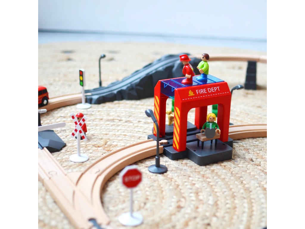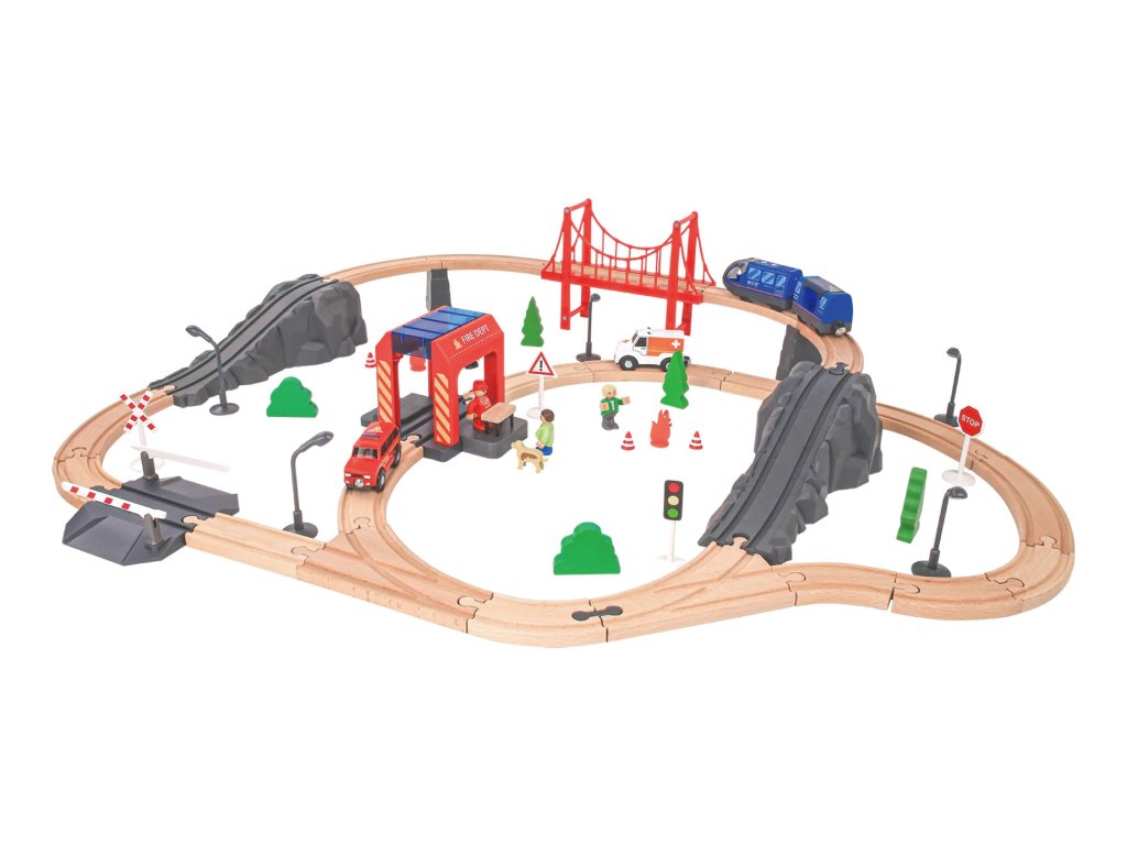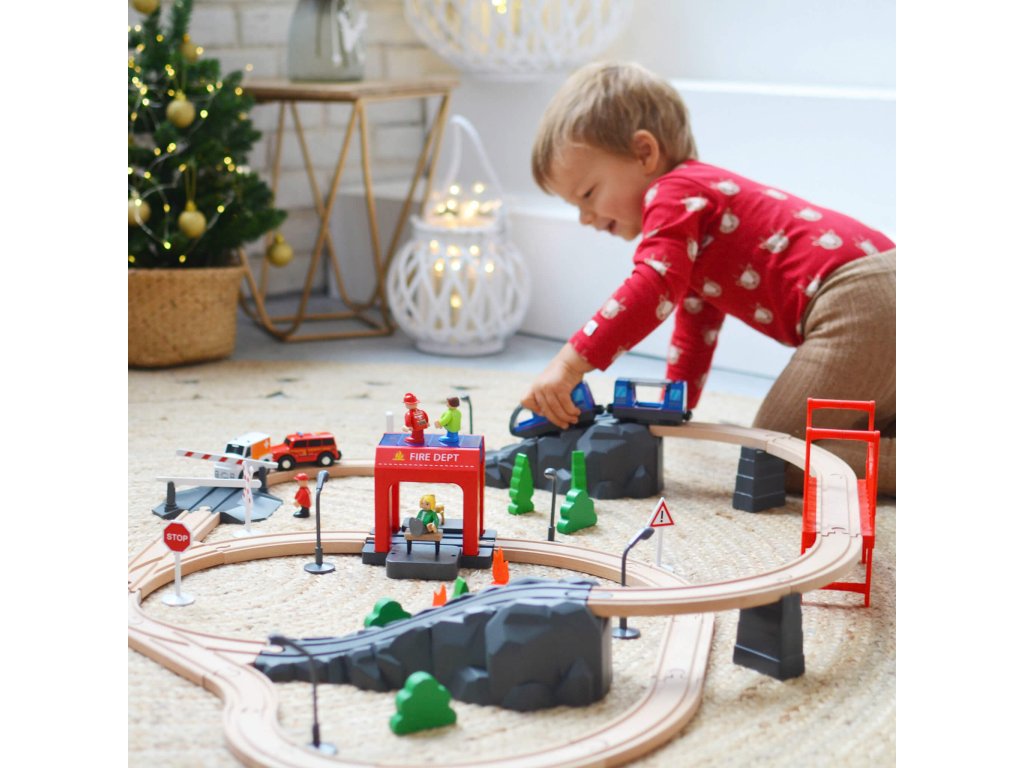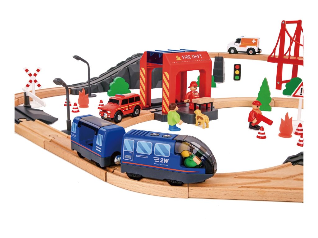 Vláčiková dráha Požiarnici Vláčiková dráha pre malých hasičov Originálna vláčikova dráha s hasičským príslušenstvom obsahuje 70 dielov. Je ideálna pre každého, kto sa zaujíma o vláčiky a záchranné zložky.Sada skvelá na rozprávanie príbehov a rozvíjanie fantázie Súprava hasičského záchranného vlaku obsahuje vlak, ktorý má zvukové efekty a dokážete doň umiestniť figúrky! Súčasťou vlakovej súpravy je aj hasičské auta, hasič, sanitka, dopravné značky, železničné osvetlenie, stromy, kríky a mnoho iného.