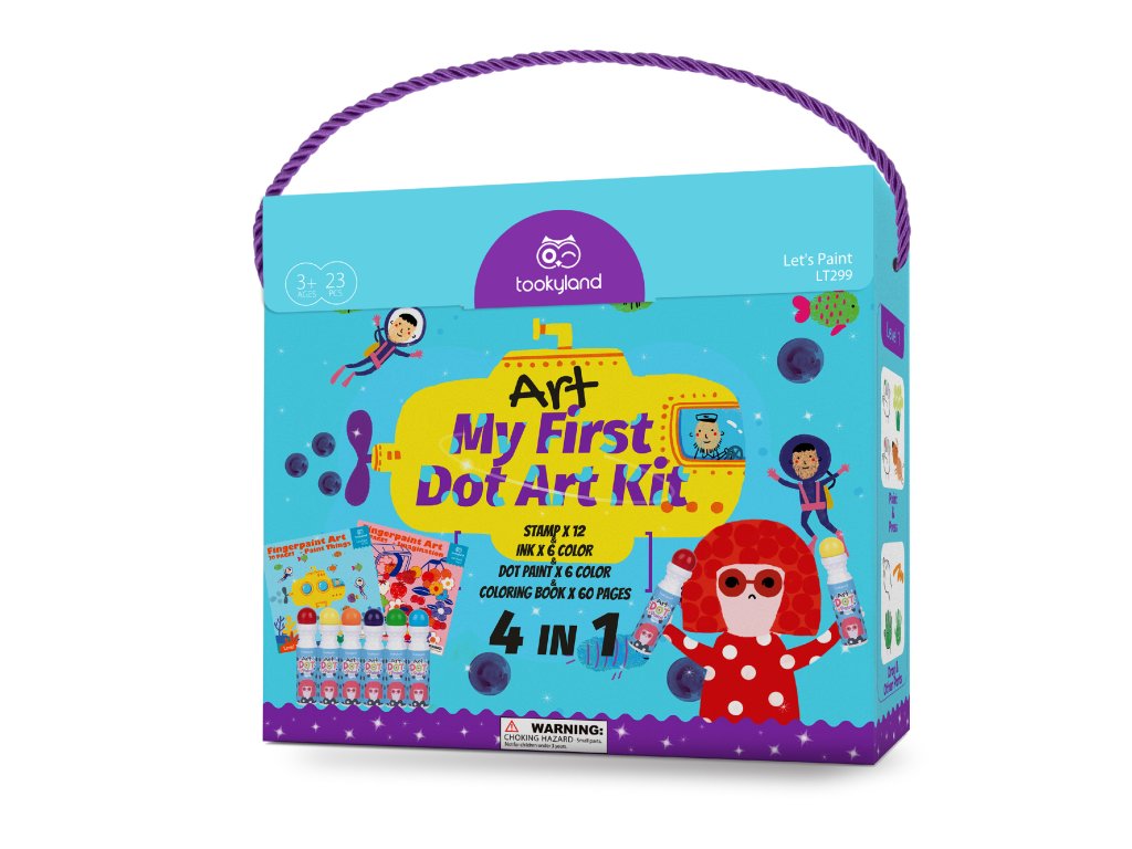 Veľká kreatívna sada 4 v 1 Farby v tube 4 obľúbené kreatívne potreby v jednom Veľká kreatívna sada 4 v 1 Farby v tube od Tookyland je určená pre malých umelcov, ktorí sa ešte len zoznamujú s tvorením. Rodičia ocenia, že nič nemusí zdĺhavo pripravovať. V prenosnom kreatívnom boxe nájdete 4 obľúbené kreatívne potreby Tookyland, ktoré je možné používať samostatné, ale taktiež ich kombinovať. Všetky sú praktické, ľahko použiteľné a vašim deťom pomôžu s rozvojom kreativity, tvorivosti, grafomotoriky aj poznávaním farieb.Veľká kreatívna sada 4 v 1 Bodkovanie obsahuje: Farby v tube na dot paintin 6 ks,Kreatívny blok Maľovanie prstovými farbami Level 1 Svet 30 listů,Kreatívny blok Maľovanie prstovými farbami Level 2 Umelec 30 listov,Pečiatky Tvary 12 ks so 6 farebnými pečiatkovacími vankúšikmi.Bezpečné kreatívne potreby pre najmenších Vďaka veľkému kreatívnemu boxu pre najmenších nebudete kupovať zbytočné a nevhodné kreatívne potreby pre svoje deti. Kreatívne potreby Tookyland sú bezpečné, navrhnuté odborníkmi priamo pre malé detské ruky a vyrábané s ohľadom na životné prostredie. Farby sú netoxické, dermatologicky testované, zmývateľné a dajú sa vyprať. Veľká kreatívna súprava Tookyland je vhodná ako darček pre deti.