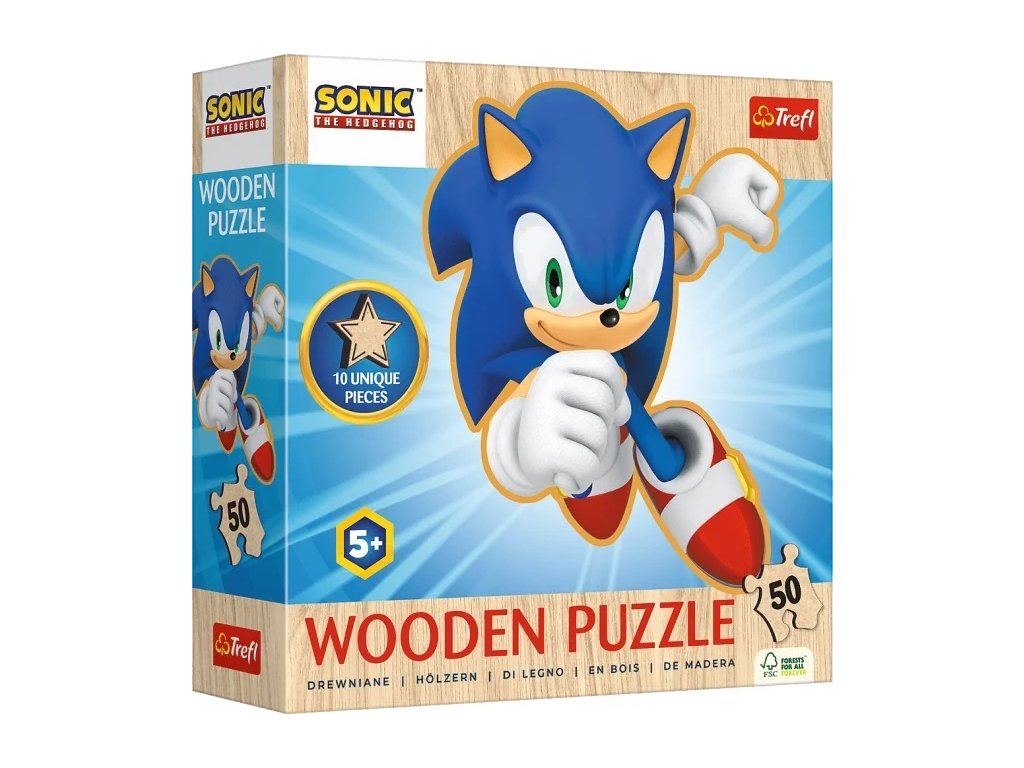Trefl Drevené obrysové puzzle Sonic: Veselý Sonic 50 dielikov