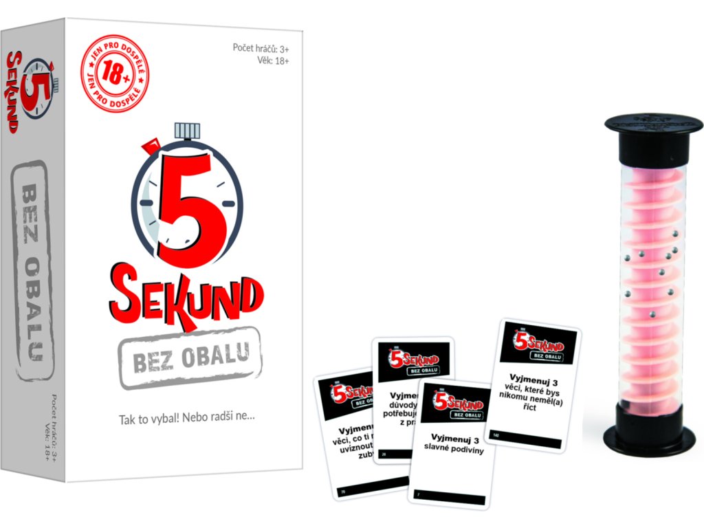 Neslušná dávka súťaženia, adrenalínu a smiechu. Len pre dospelých! Pikantná kombinácia jednoduchých pravidiel, dynamickej hrateľnosti a kontroverzných otázok. Všetci behom okamihu pochopia pravidlá! Jedna osoba prečíta otázku, druhá odpovie a má na to iba 5 sekúnd. Pravidlá sú jednoduché, ale vymenovať tri správne odpovede na nejednoznačné otázky počas piatich sekúnd je celkom problém. Zvlášť pokiaľ sa z vecí, ktoré vám napadnú, budete červenať a rozpaky vám uväznia odpovede v krku. Raz, dva, tri, štyri, päť a je to! Čas sa kráti! Aj zdanlivo jednoduché otázky môžu hráča omráčiť.