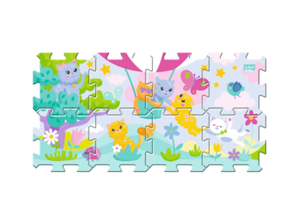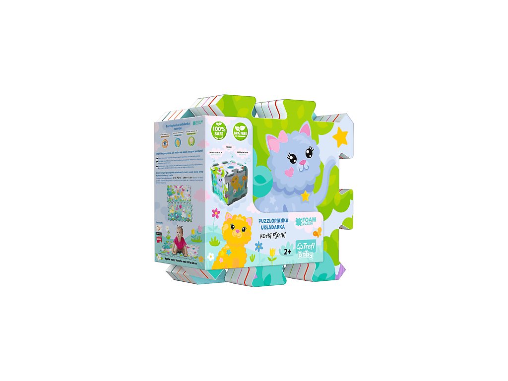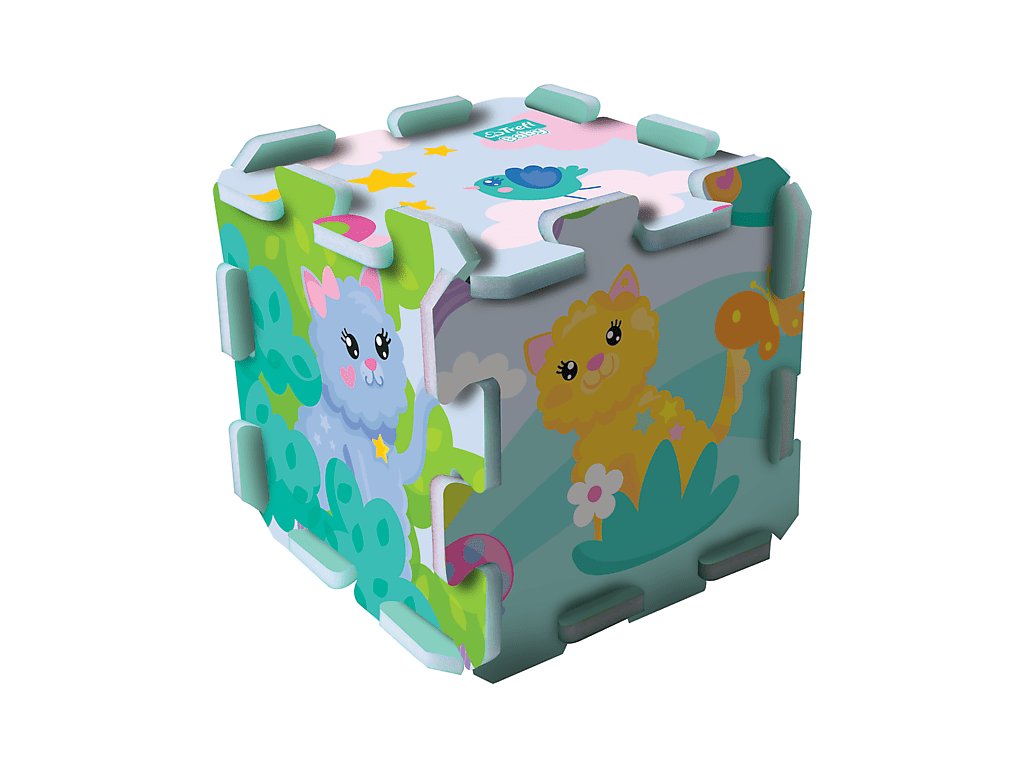 Penové puzzle - Mačiatka 2020. Obsahujú 8 veľkých, makkých, farebných a ľahko umývateľných dielov, z ktorých je možné stavať 3D tvary, ako napríklad kocku alebo krabicu. Môžu sa používať aj ako podložka na hranie. Penové puzzle rozvíjajú detskú predstavivosť, pomáhajú deťom učiť sa farby a tvary. Vyrobené z netoxického materiálu, BPA free.