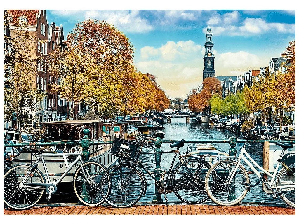 Puzzle ukazujú malebnú jeseň v Amsterdame. Po položení vznikne obraz s rozmermi 683x480 mm.