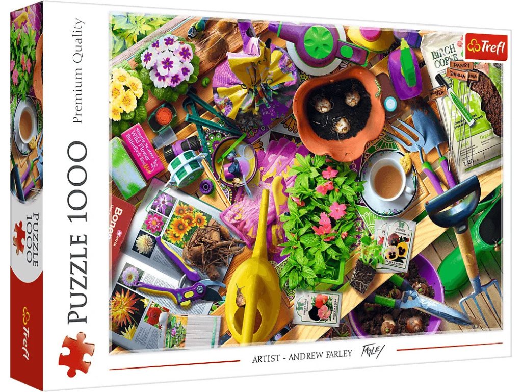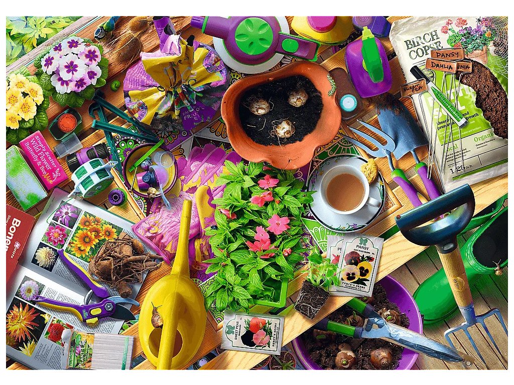 Puzzle Upratovanie záhrady zložené z 1000 dielikov predstavuje farebný obrázok, ktorý poteší nielen záhradkárov. Po ich usporiadaní vznikne obrázok s rozmermi 683x480 mm.
