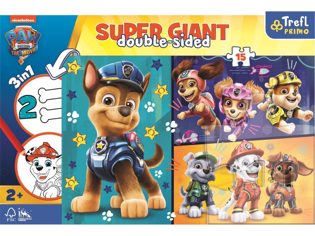 Tri hry v jednom produkte. Puzzle s 15 veľmi veľkými dielikmi pre najmenšie deti (od 2 rokov). Na zadnej strane puzzle je omaľovánka a jednoduchá hra s vyfarbovacími prvkami, s obrázkami obľúbených animovaných postavičiek.