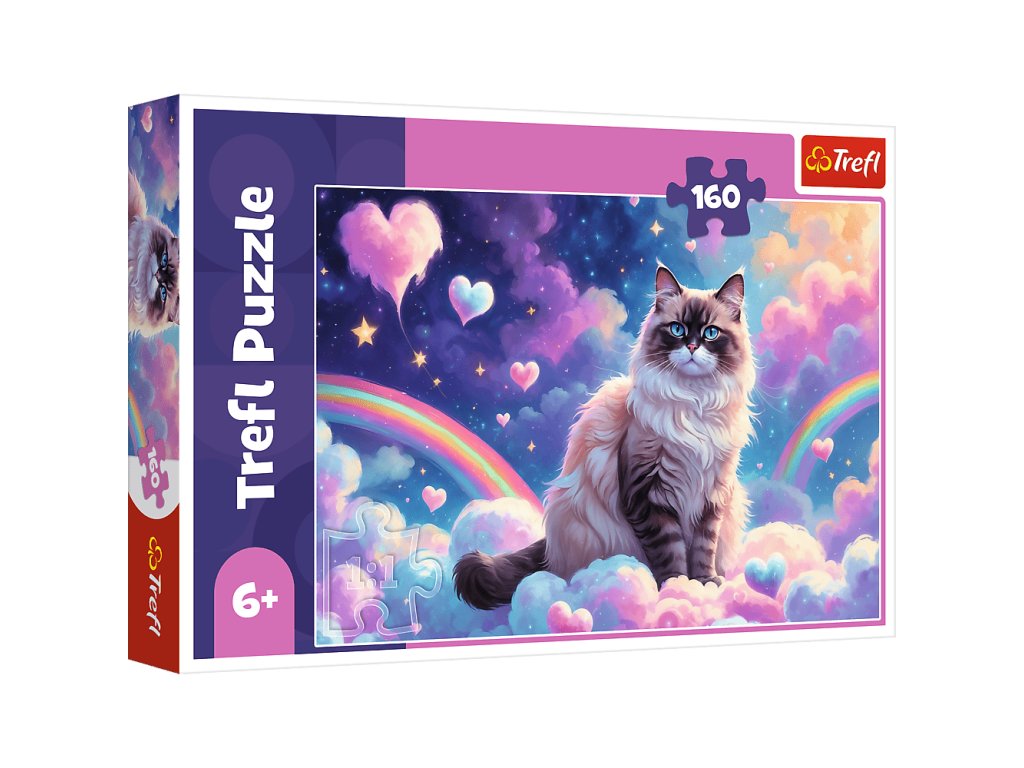 Domáce mačiatko je 160-dielne puzzle , ktoré poteší mladých milovníkov domácich zvierat. Po zostavení puzzle vytvorí obrázok s rozmermi 410 x 275 mm zobrazujúci mačku v oblakoch.