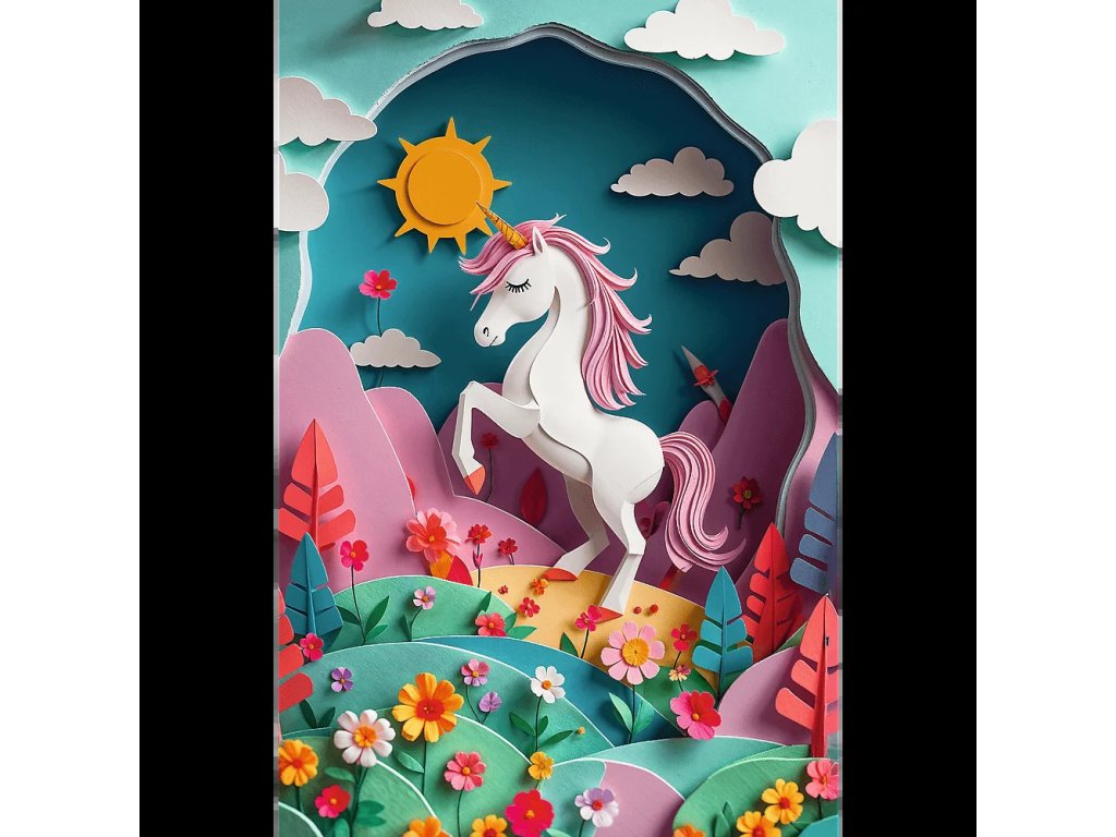 Obrázok inšpirovaný papierovým umením meria po zložení 410 x 275 mm.
