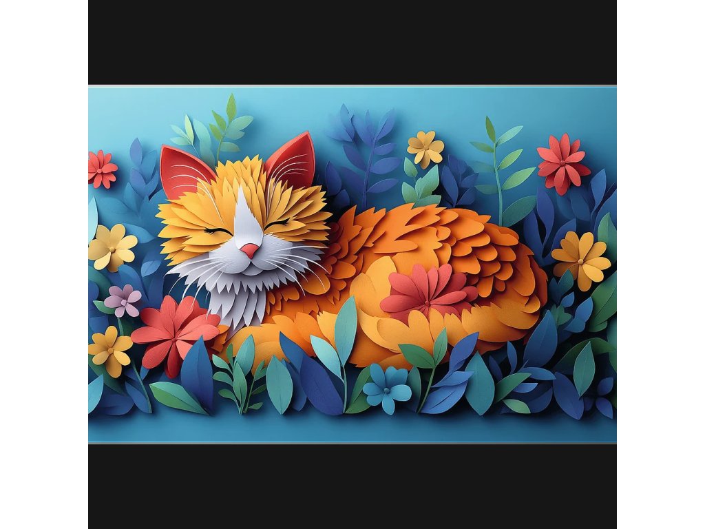 Obrázok inšpirovaný papierovým umením meria po zložení 410 x 275 mm.