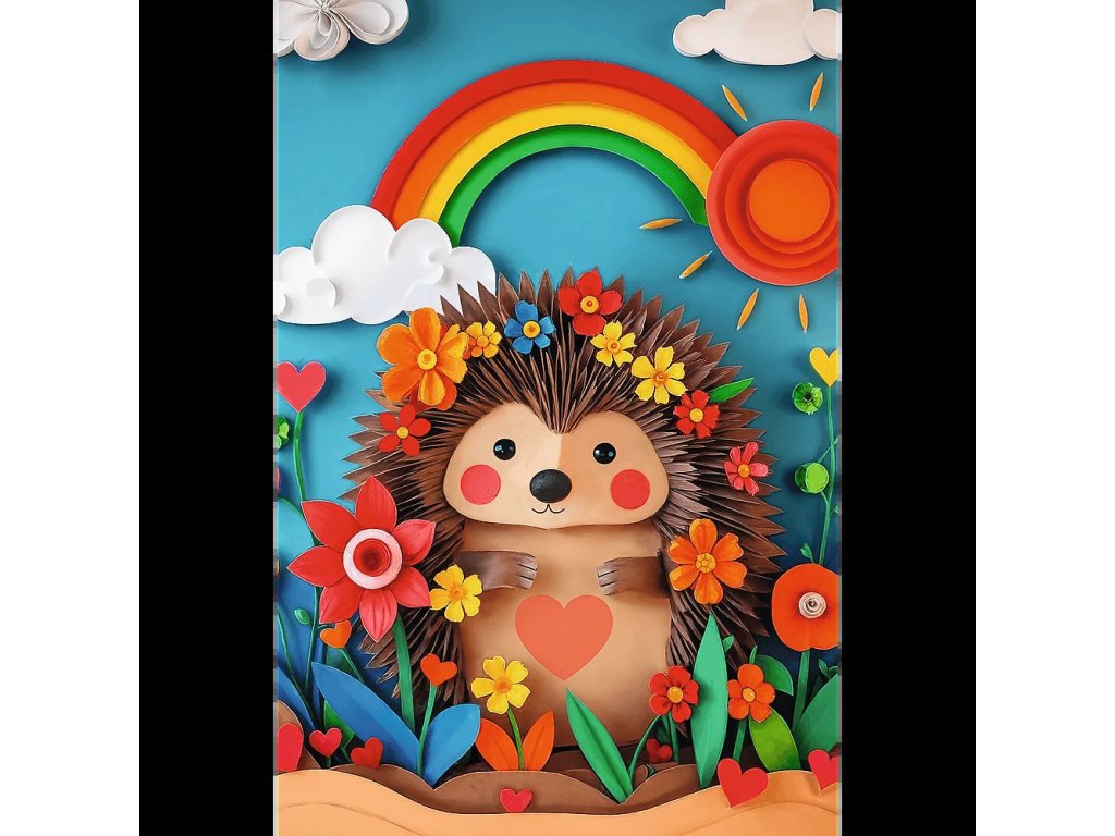 Obrázok inšpirovaný papierovým umením meria po zložení 410 x 275 mm.