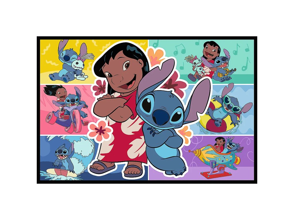 Puzzle 2x200 sú dve 200-dielne puzzle v jednom balení ! Radosť zo Stitcha je skladačka s farebnými kolážami postavičiek Lilo a Stitcha . Každá skladačka vytvorí obrázok s rozmermi 410 x 275 mm.