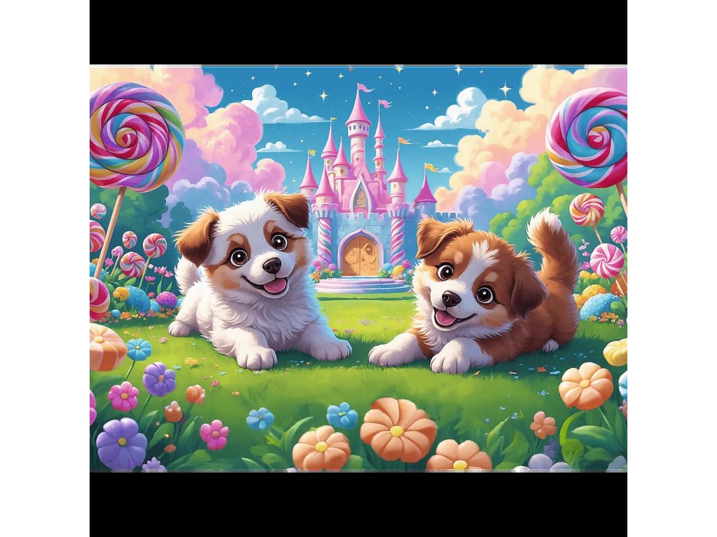 Svet plný úsmevov je 30-dielna skladačka navrhnutá pre malých milovníkov psov. Po zložení vytvorí skladačka obrázok s rozmermi 270 x 200 mm zobrazujúci dve šteniatka v farebnej krajine s hradom v pozadí. Výrobok je vyrobený z vysoko kvalitných materiálov, s použitím špeciálneho kalandrovaného papiera, ktorý odráža svetlo, vďaka čomu sa ľahšie skladá.