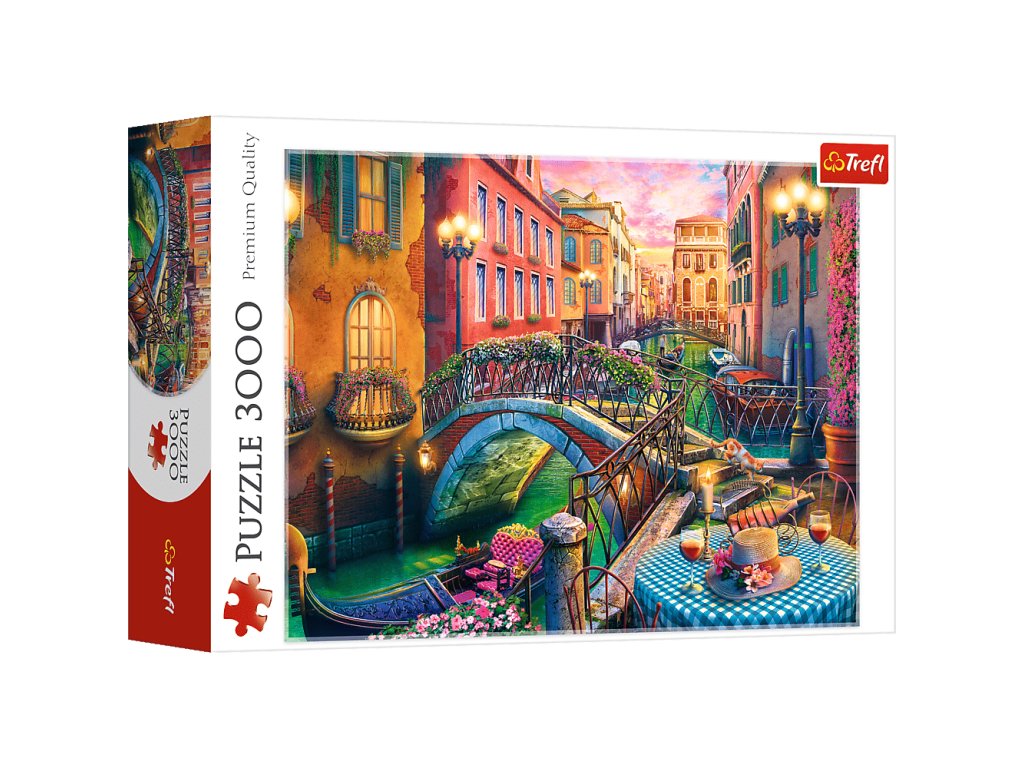 3 000-dielna skladačka s názvom Benátky večer zobrazuje benátsky kanál pri západe slnka. Výrobok je vyrobený z vysoko kvalitných materiálov, s použitím špeciálneho kalandrovaného papiera, ktorý odráža svetlo, vďaka čomu sa ľahšie skladá.