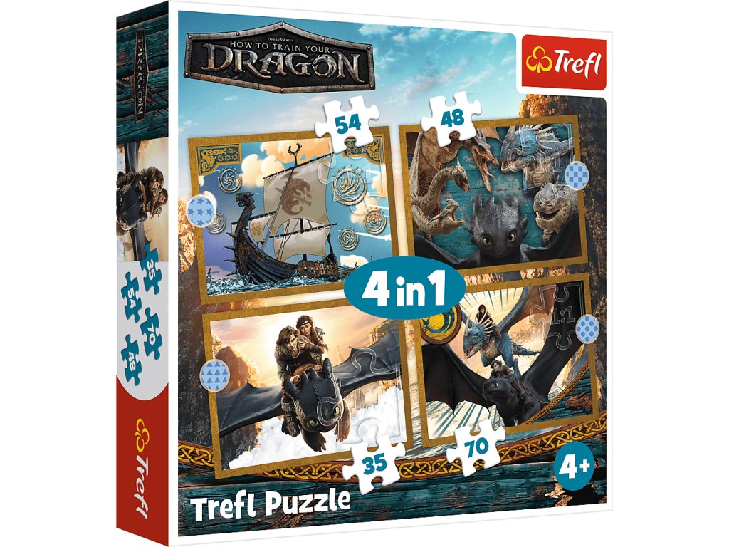Trefl Puzzle 4v1 Dračie dni / Ako vycvičiť draka